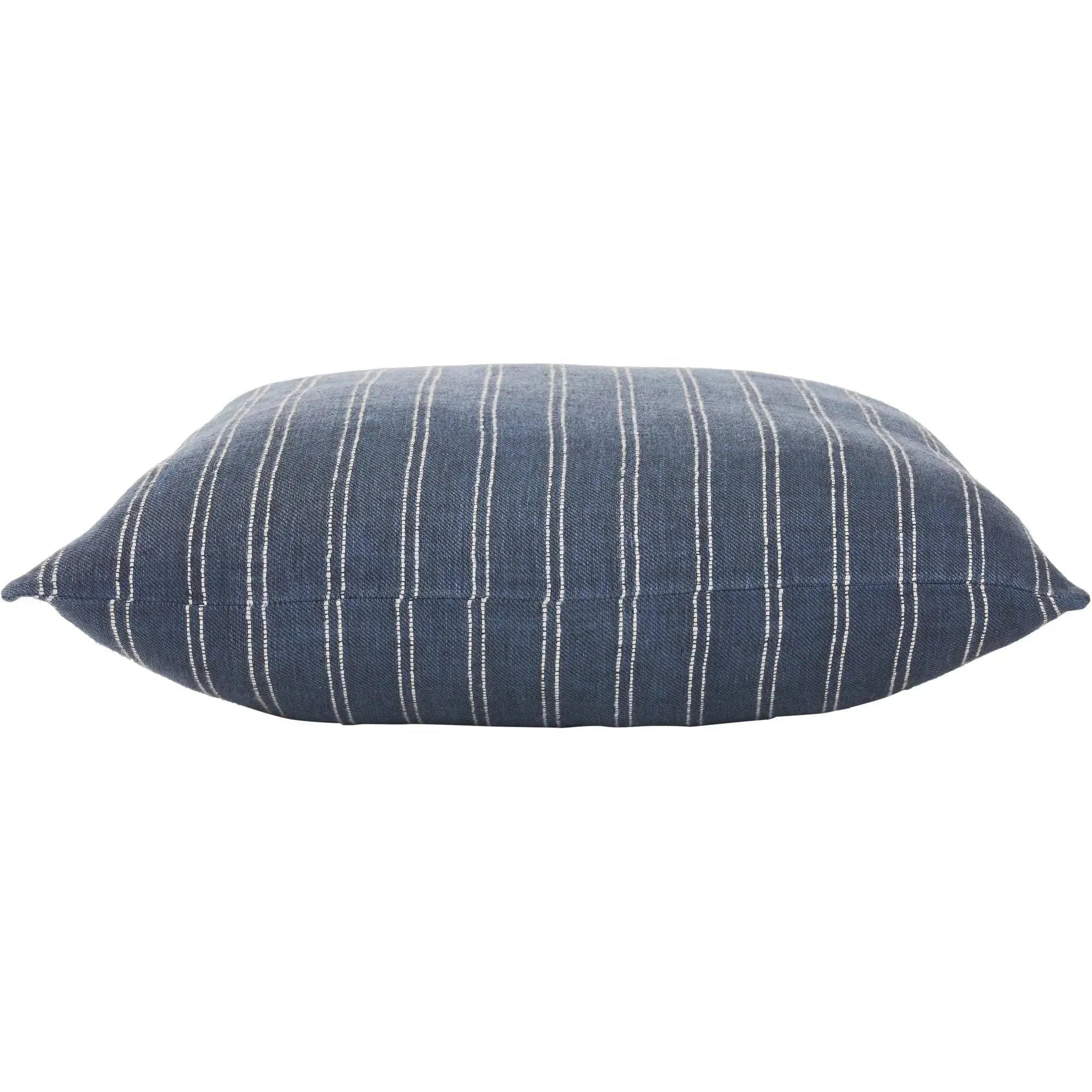 This pillow holds an inherent feeling of class and quality thanks to its double-sided twill stripe design and quality feather-down filling. Featuring stripes of navy and white along its linen build, it carries expansive potential for design placement. At 20 by 20 inches, it feels substantial on a bed or sofa, but could pair with a complimentary pillow or two if desired.