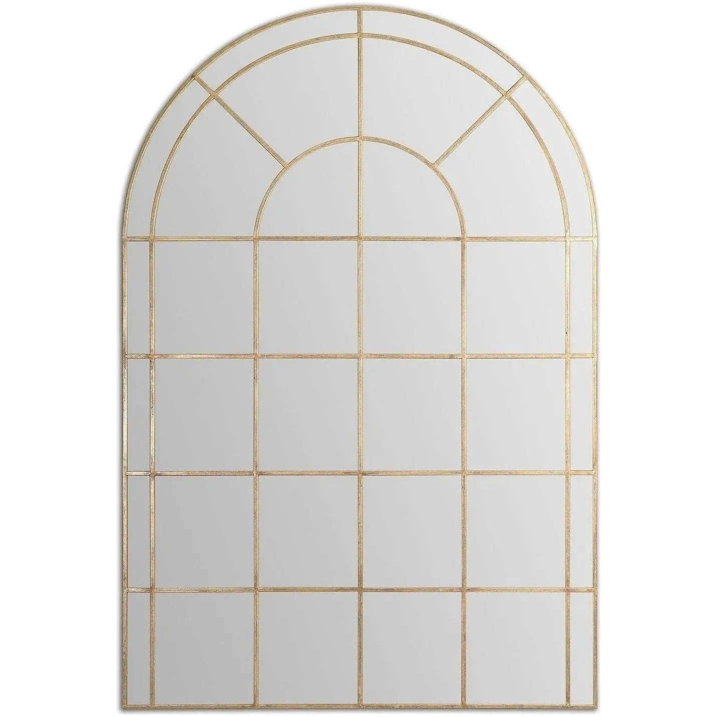 A Transitional Take On A Classic Design, This Arch Mirror Features A Delicate Iron Frame Finished In Satin Black or Antiqued Gold.