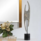 Inspired By A Mermaid's Purse, This Sculpture Features A Very Unique Look And Ribbed Pattern Finished In Black And White With Black Iron Stand And Marble Base.