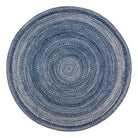Epona Braided Blue area rug, blending indigo hues with organic texture and rustic charm. Hand-braided by skilled artisans, each rug is meticulously crafted for durability and timeless appeal. Whether placed in your bedroom, living room, entryway, or dining area, this cozy rug adds a touch of warmth to any space. The soft yarn used is crafted from recycled drinking bottles, offering a sustainable decor choice without compromising on comfort. Versatile and stylish, this rug effortlessly complements various themes like coastal, cottage, or boho chic while providing both floor protection and classic elegance.