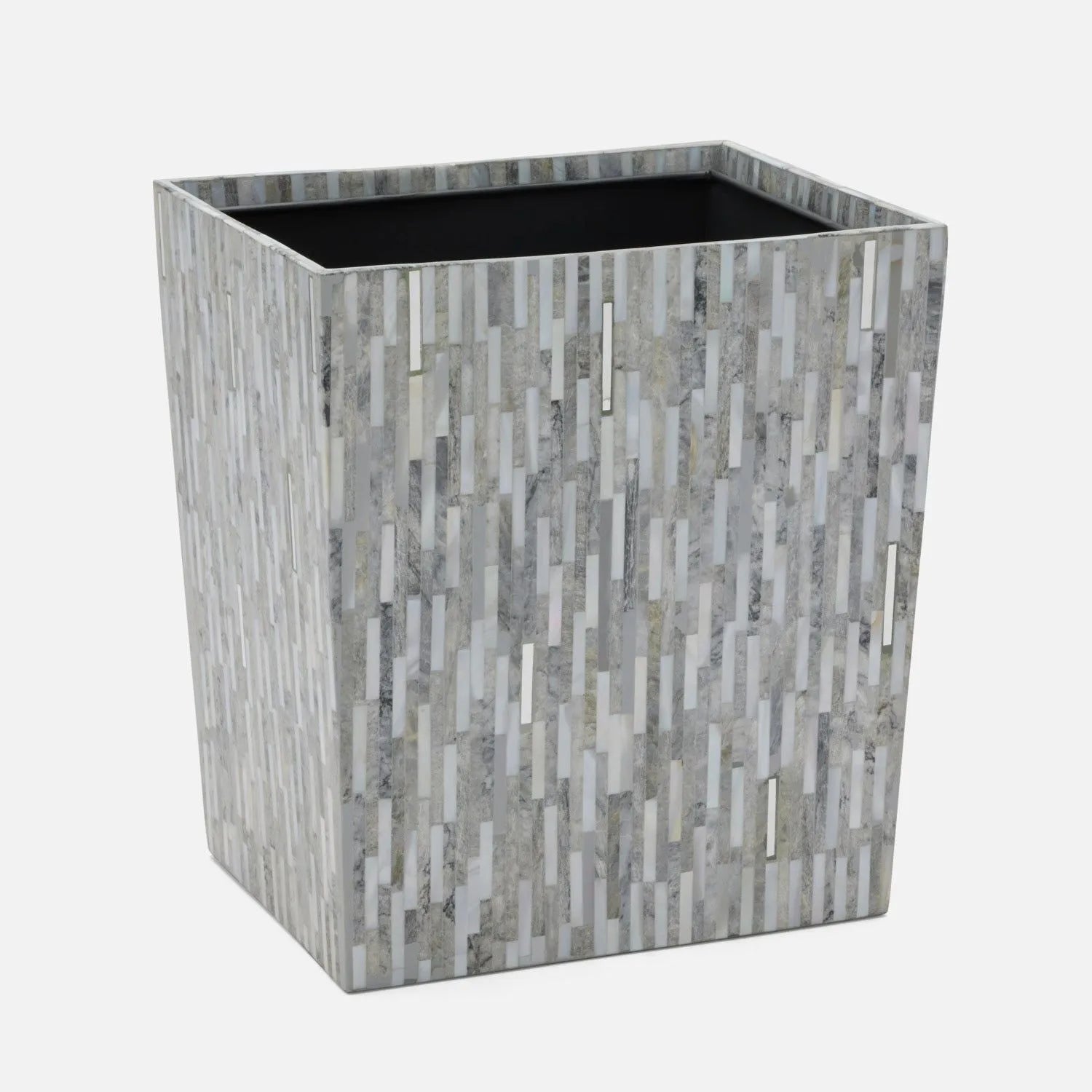 Add some understated glamour with the Cortona's sparkle. Clamstone and troca shells show the offset pattern's shimmer while metal rods add the shine. Go with Brass to warm up a space, or cool it down with Silver.