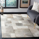 Studio Leather STL174F Grey rug, a stylish and tactile addition to your home decor. Made by Safavieh using premium cowhides and leather, these rugs are both fashion-forward and durable. The collection showcases a variety of designs, from classic square patchwork to modern geometric cutouts that add a unique touch to any room.