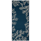 Esencia Coral Edge Navy mat, a versatile and stylish addition to your decor. The vibrant navy-blue background of this transitional mat is adorned with an ivory coral motif border, perfect for bringing a touch of coastal charm to any space. Whether placed indoors or outdoors, this decorative piece will effortlessly enhance the ambiance of your home.