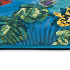 Esencia Koi Pond Blue, a charming and whimsical novelty mat perfect for adding a touch of nature-inspired beauty to your space. Dive into a serene aquatic world with vibrant orange, black, and white koi fish gracefully swimming around lush green lily pads in tranquil blue waters.