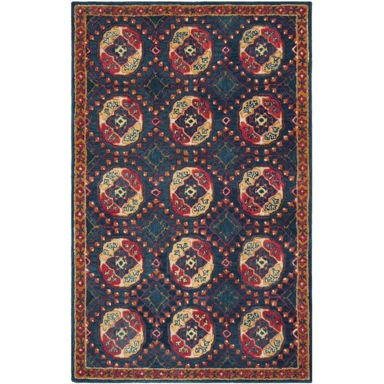 Heritage HG424N Navy Red rug by Safavieh - a stunning addition to elevate your living space. Crafted with intricate detailing and a lively color palette, this hand-tufted rug exudes elegance and charm. Made from pure wool with a durable cotton backing, these rugs are not only visually appealing but also robust enough to withstand high foot traffic areas in your home.