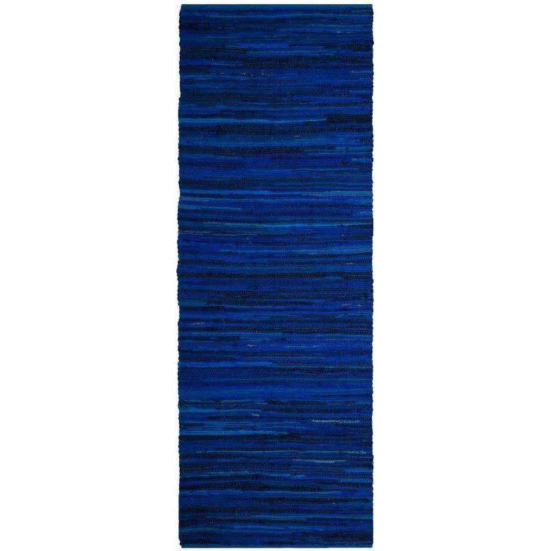 Rag Rug RAR130B Blue Multi - a modern twist on a classic American craft. This chic cotton pile rug collection brings a touch of trendy colors to the traditional rag rug design, making it ideal for adding a pop of style to any casual room setting. Each rug is expertly woven by skilled village artisans in India, ensuring quality and authenticity.