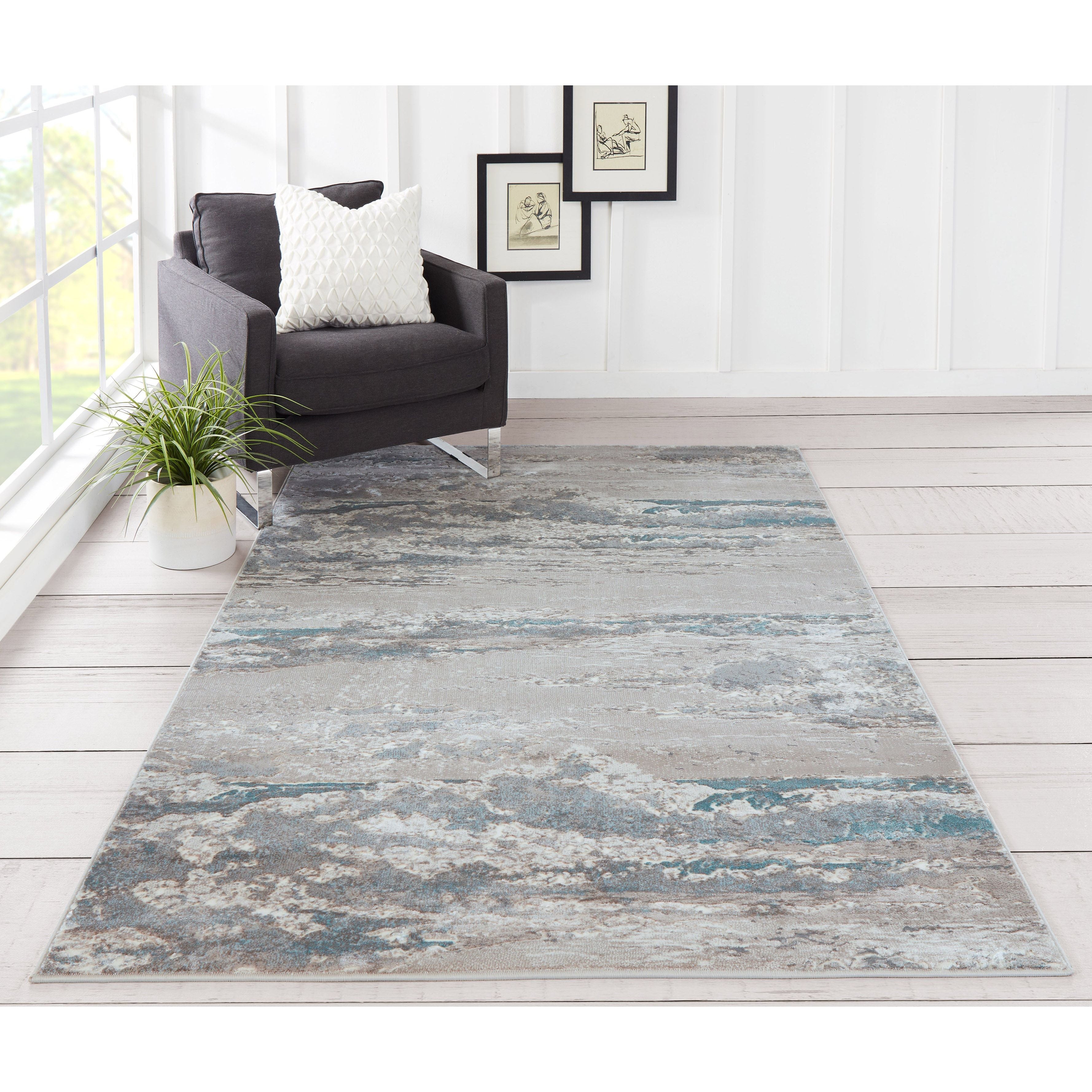 Monterey Mo 08 Teal area rug - a perfect addition to modern interiors. This rug features abstract gestures that are on-trend in contemporary decor. Splattered streaks and striations create a unique design, with shades of blue, brown, red, and teal showcasing various patterns from traditional Persian to transitional trellis.