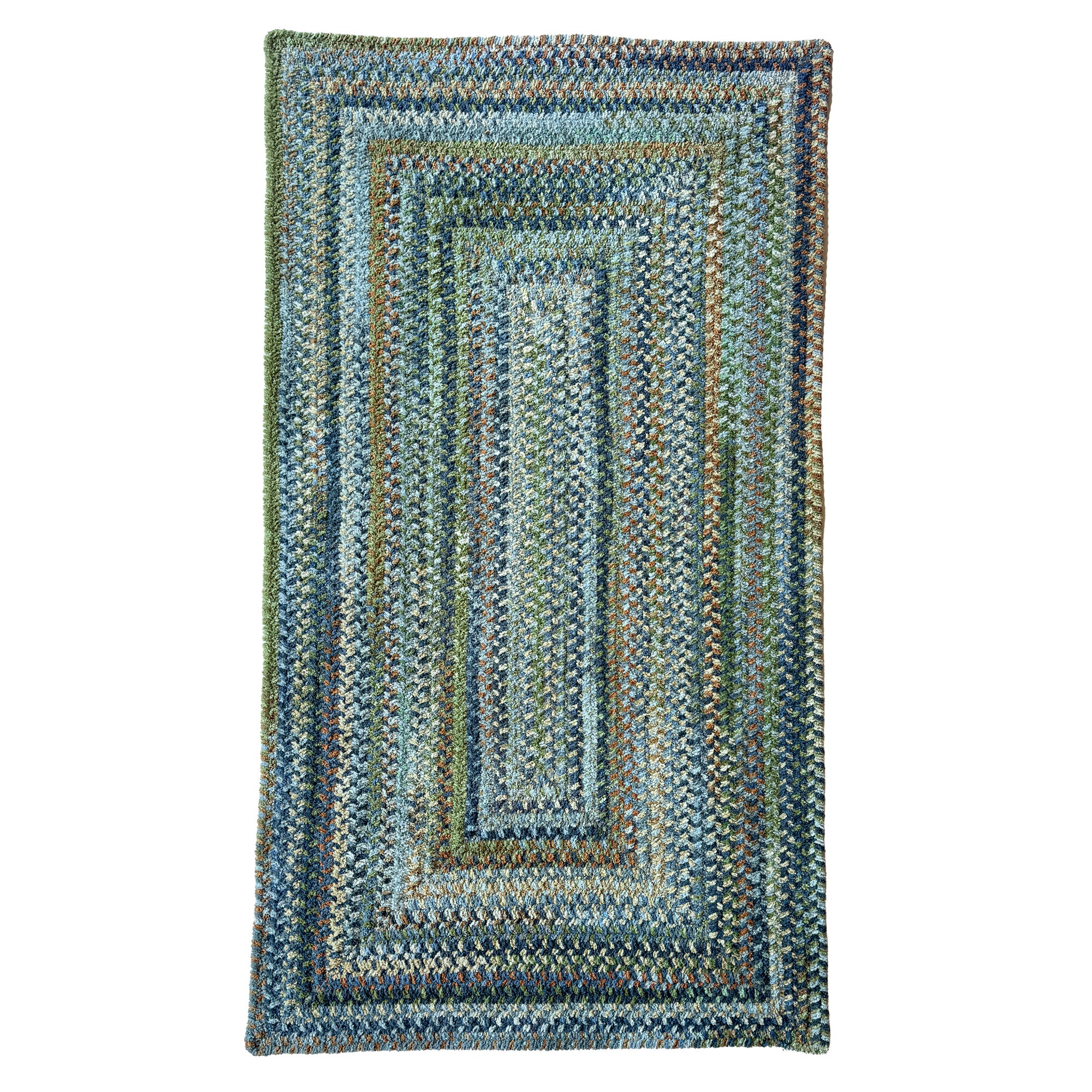 Mesolite is not only reversible but expertly crafted to our notable standards. Named for a mountain in Montgomery County, this design exhibits a tranquil nature inspired color palette with soothing variations to make you feel at one with the landscape. The soft, plush cotton pile makes it an excellent choice for bedrooms.