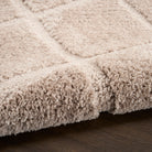 Equal parts cozy and refined, this beige shag rug from the DKNY West End Ave collection brings relaxed style to your space. The classic checkerboard pattern is enhanced with a dimensional high-low weave that has a luxurious texture.