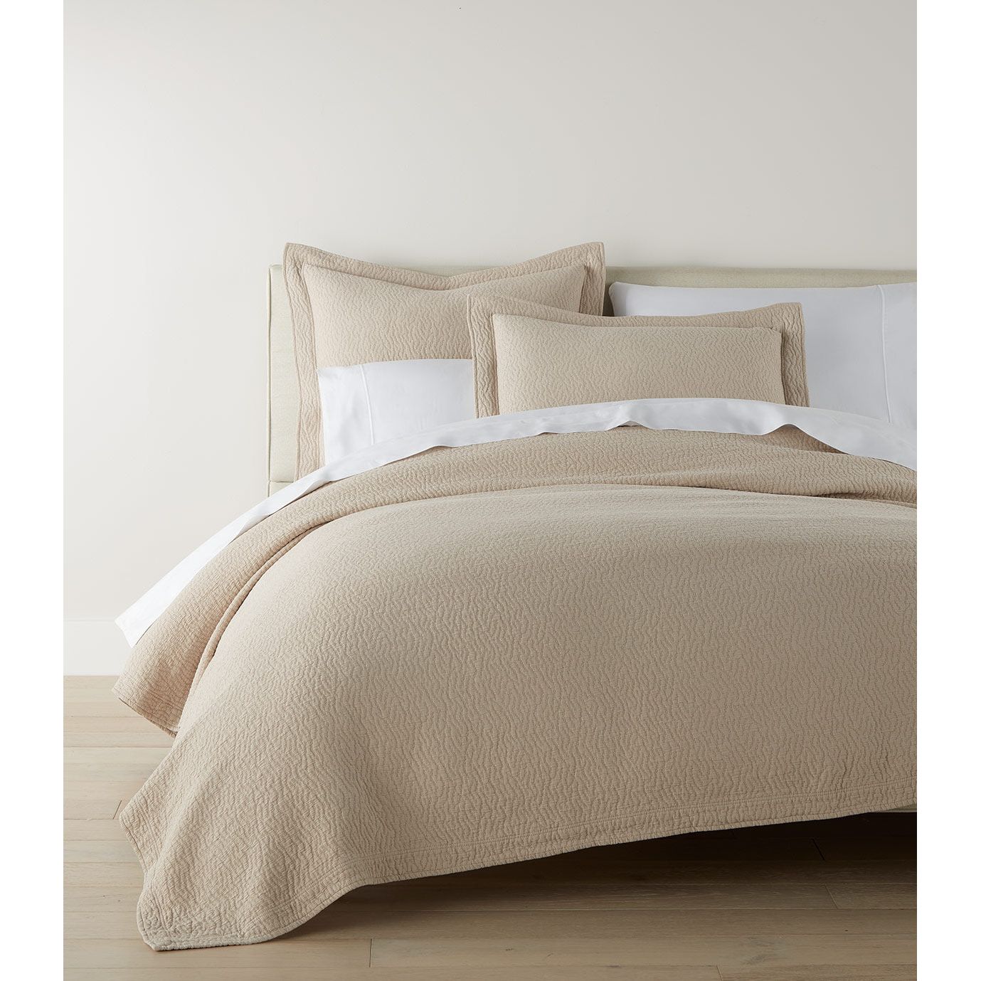 The Mia Coverlet is exquisitely crafted in Portugal to bring a touch of European elegance to your bedroom. Immerse yourself in the sublime softness of garment-washed fabric, offering a cozy and inviting layer for a restful night's sleep. Choose from three versatile neutral colors, each exuding a timeless charm that effortlessly complements any décor style.