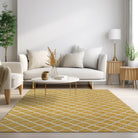 Elevate your indoor or outdoor space with the York YO1 Gold rug, designed to bring a touch of elegance and comfort to your home. Available in a variety of colors, these family and pet-friendly rugs feature a soothing lattice pattern that effortlessly complements any decor style, creating a harmonious ambiance.