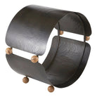 A traditional log holder is updated in hammered, blackened iron. Its oversized circular profile acts as enclosed storage, while contrasting spacers of sienna marble add an element of surprise. Finished with marble feet, its modernist silhouette is a work of functional art for any hearth. Finish will vary.