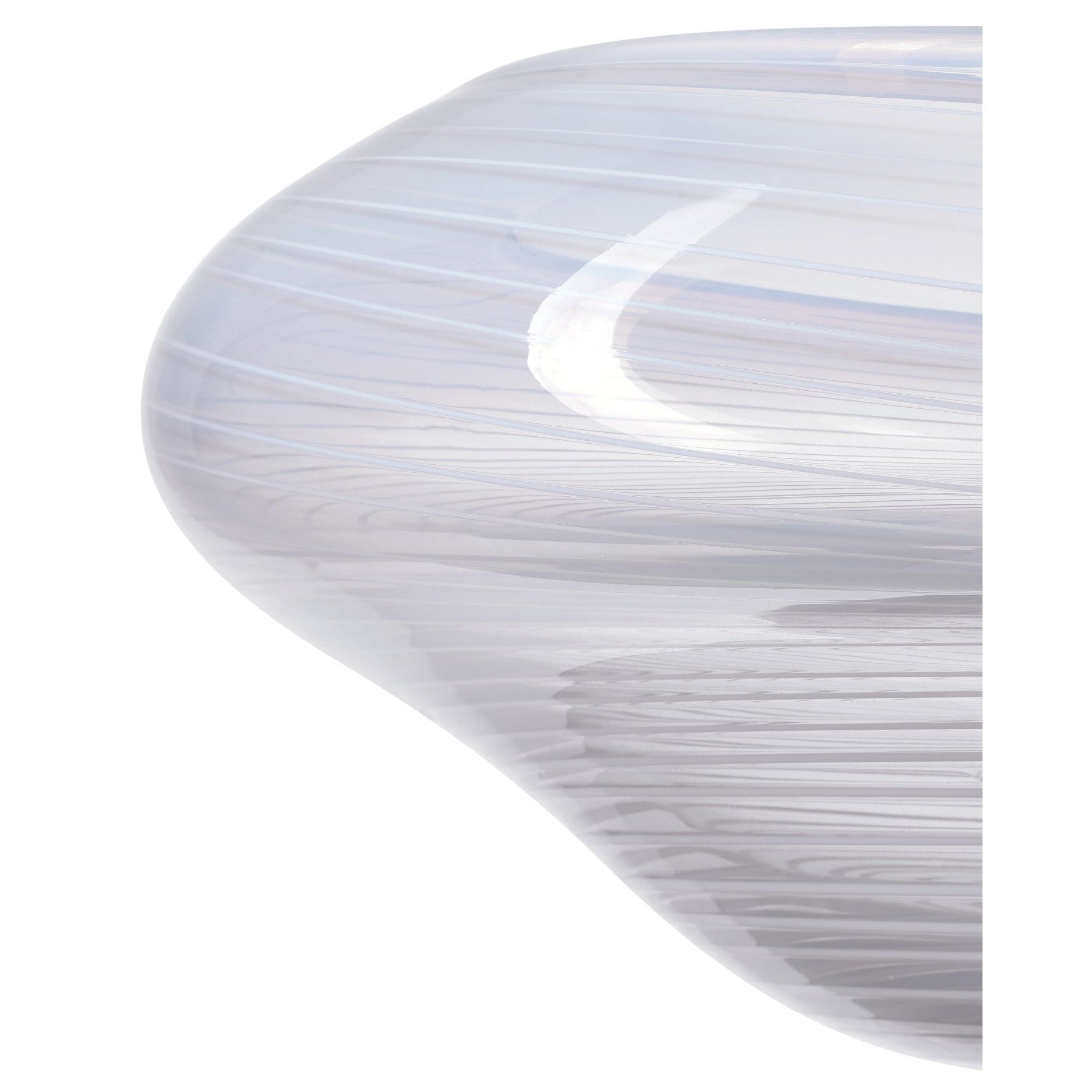 The Bonaventure Bowl is a stunning piece made from pale gray mouthblown glass. Delicate swirling lines create textural striations across the surface, giving the bowl a sense of movement and depth. Each bowl is individually handcrafted, beginning with molten glass dropped from the blowing pipe into an orb, then shaped by hand and cut at the top with scissors to form its unique silhouette. The result is a one-of-a-kind decorative piece with a beautiful, opalescent finish that subtly shifts in the light.