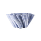 The Twirl Blue Bowl, which is made of 3-D printed porcelain, creates the illusion that it is twisting as it rises. Blue and white clay is mixed before it is fed into the printer to create the textural striations on the surface of this vase, which is a little over six inches high and twelve-and-a-half inches in diameter. While the placement of the color will vary with each of these bowls, the overall design will be perfectly uniform. This vase is not watertight.