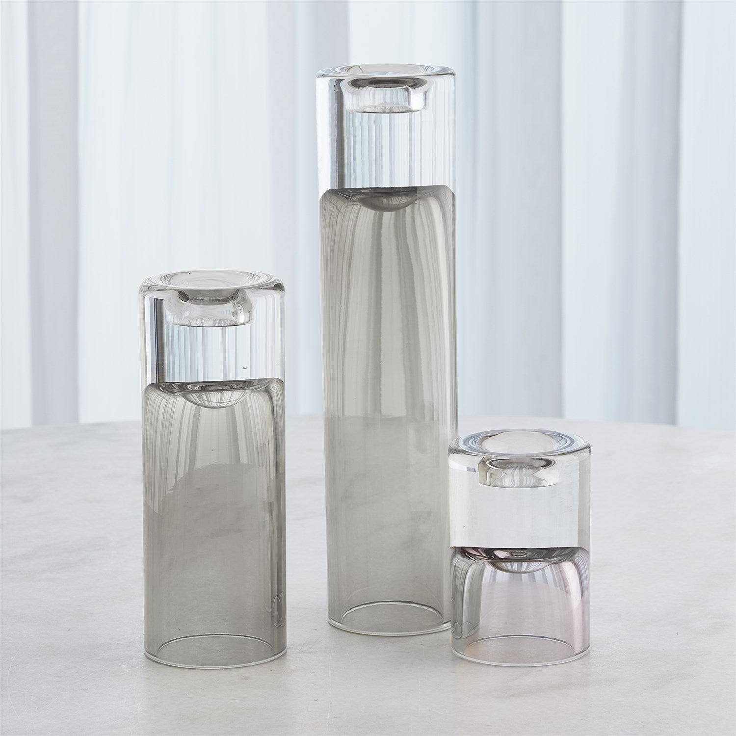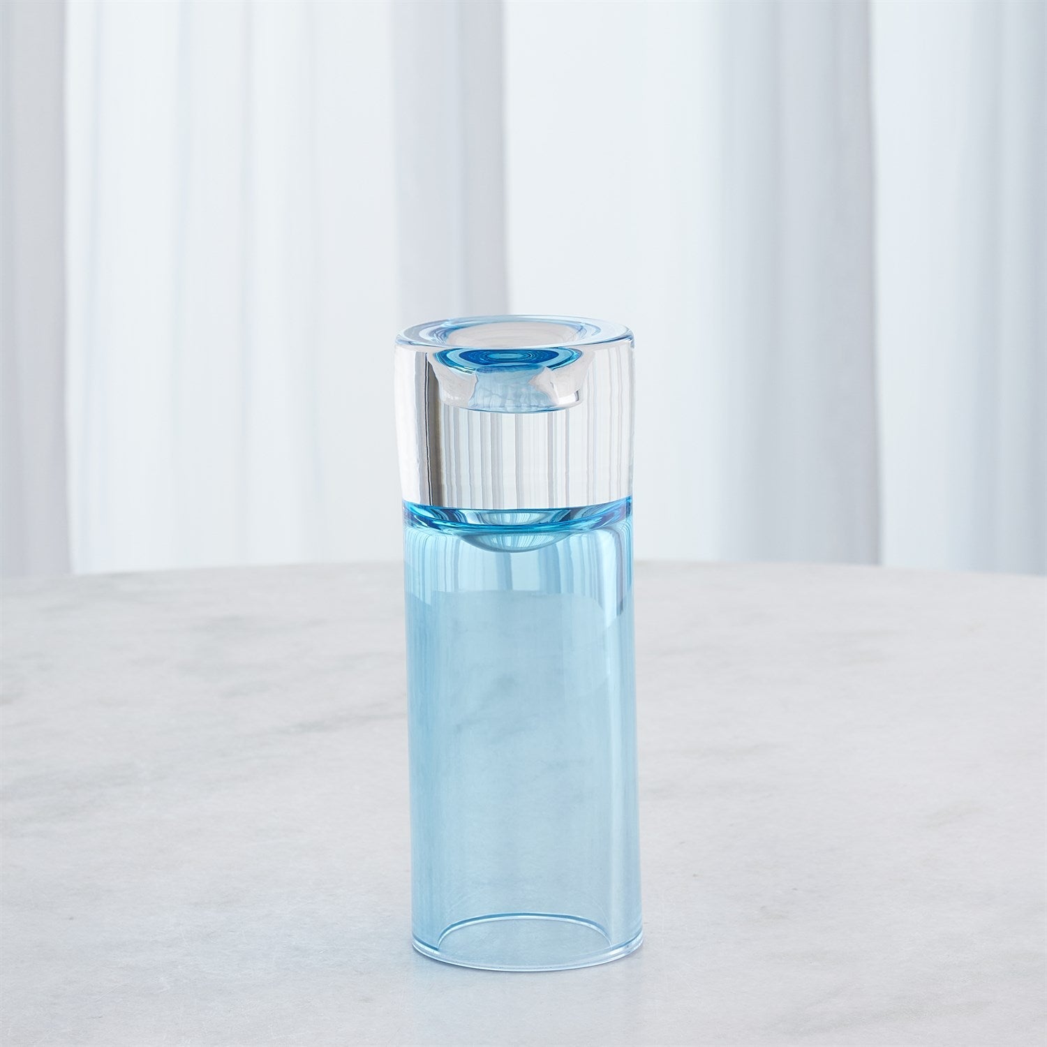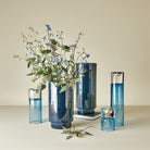 The Radiant Tea Light Holders/Vases are crafted from hand-blown Polish art glass featuring encased colors achieved by layering blue and clear glass. Versatile in design, these pieces can be used as elegant tea light holders or flipped to serve as striking vases, enhancing any space with their rich beauty.