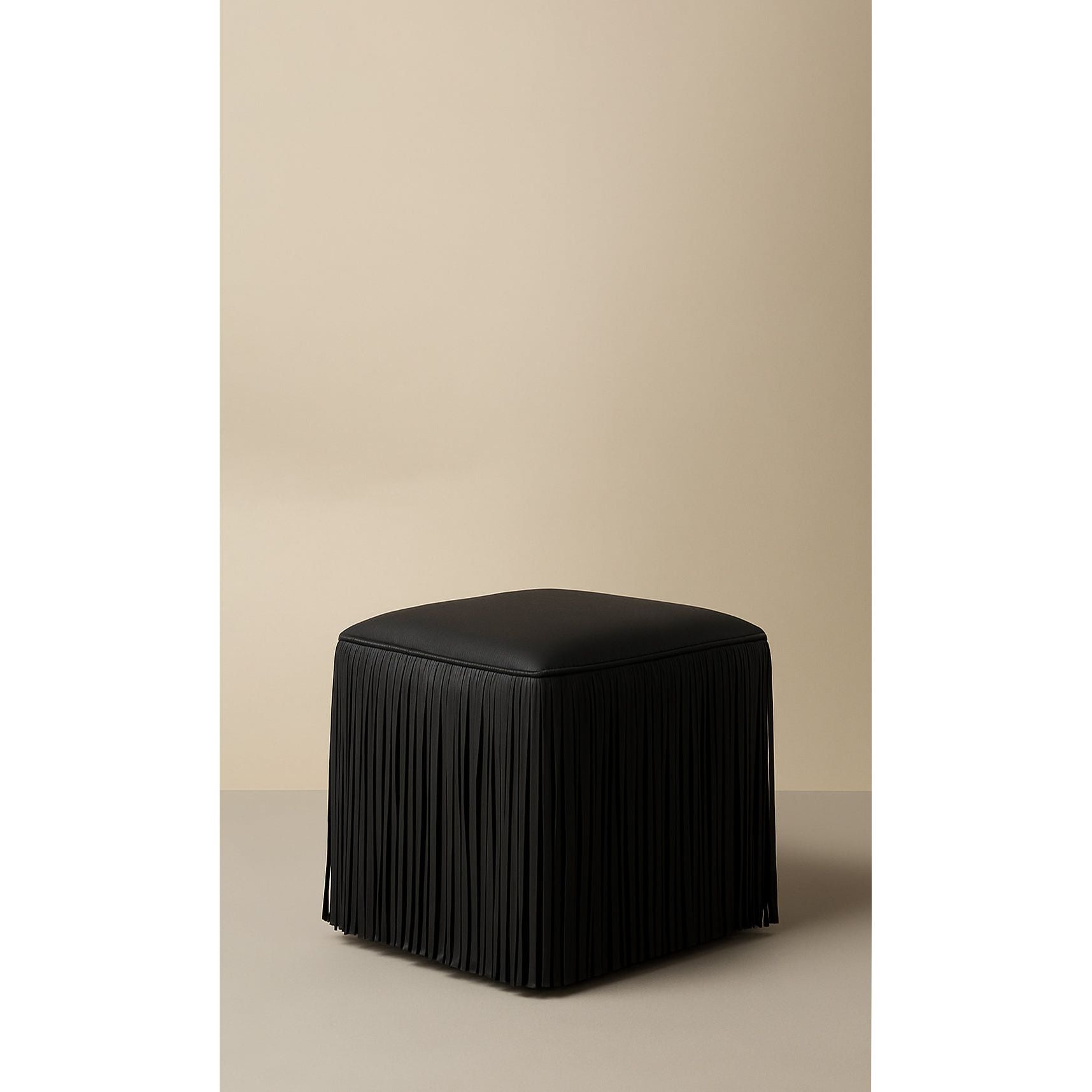 Ina Fringe Leather Ottoman - Black