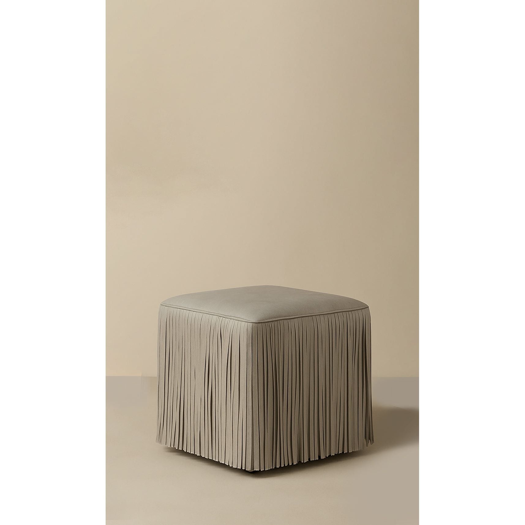 Ina Fringe Leather Ottoman - Ivory