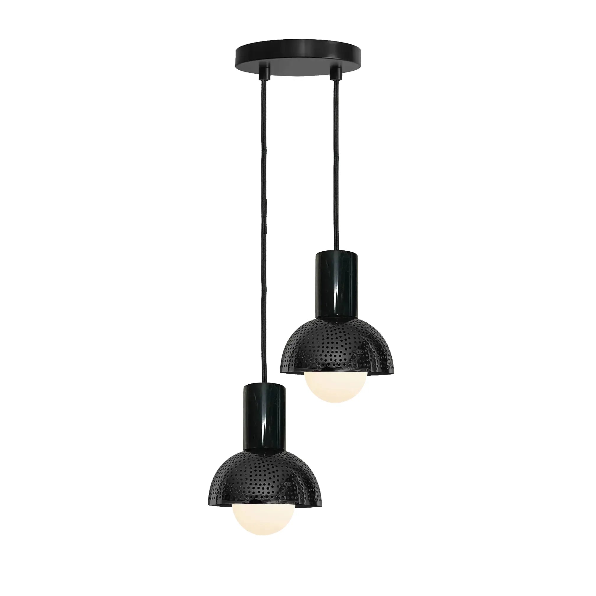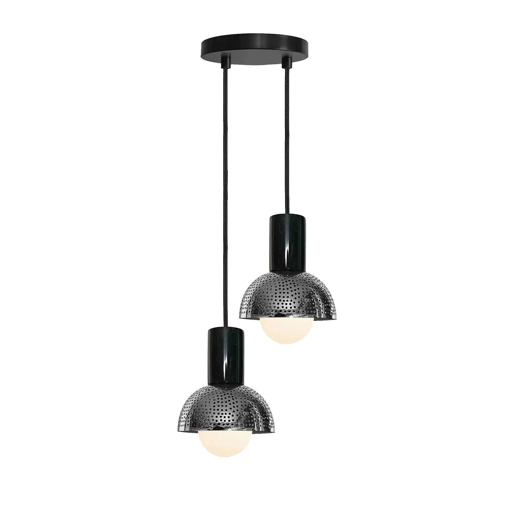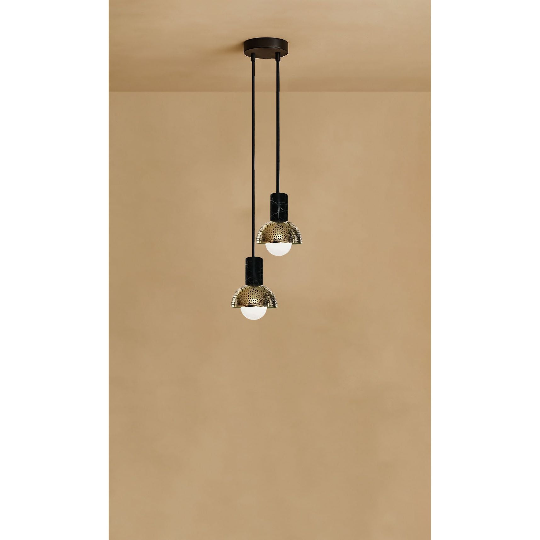 The Maria two globe chandelier easily adds a touch of sophistication to your space. Their color combination is perfect for minimalist interiors, and their perforated metal build adds a contemporary touch and brings any space to life! Are you a trade Professional? and receive exclusive benefits.
