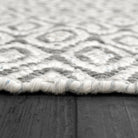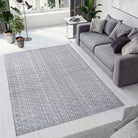 Allegra 2987 Grey Ivory Denim rug, a versatile addition to any living space. This rug from the Allegra collection boasts neutral colors that effortlessly blend with various décor themes. Its captivating geometric patterns add a modern touch, making it a standout piece in your room. Crafted in India using PET yarn, each rug is meticulously handmade to ensure quality and durability.