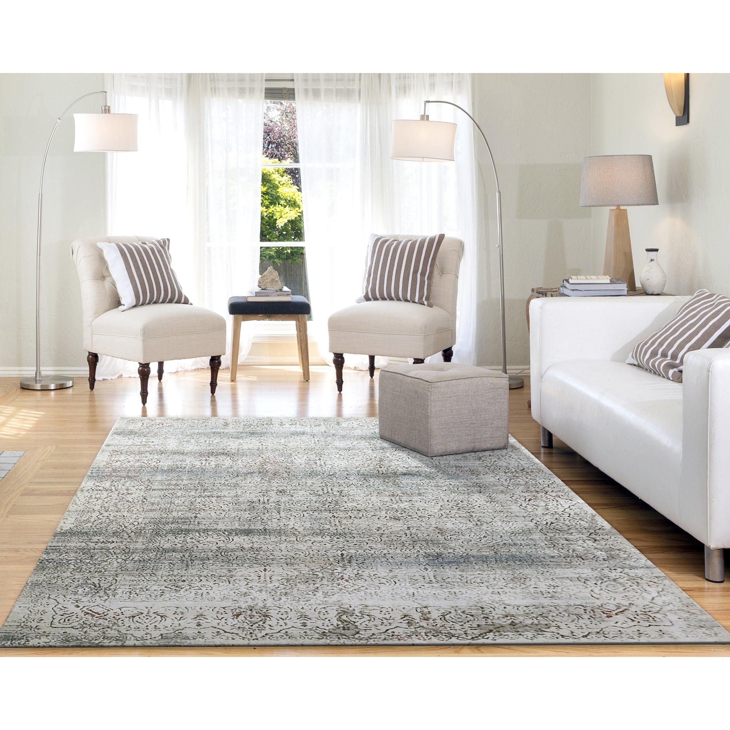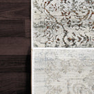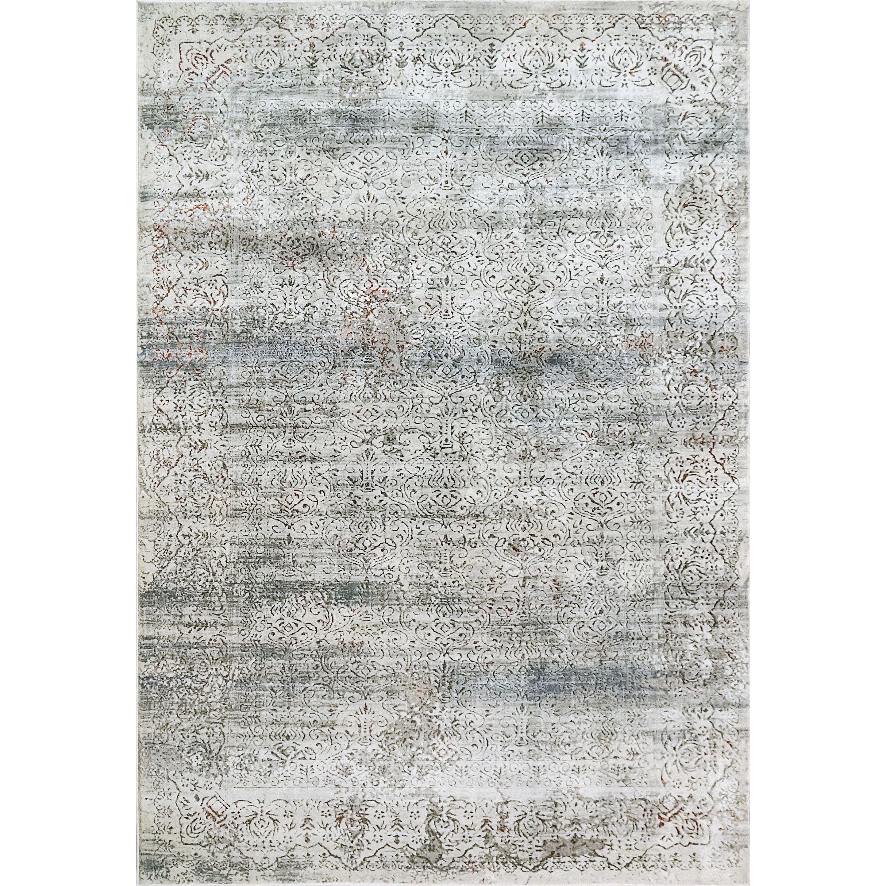 Capella 7974 Grey Multi rug, a stunning blend of shrink polyester and soft polypropylene crafted in Turkey. This rug boasts a unique distressed effect that overlays intricate classic and abstract patterns. The combination of shrink polyester and soft polypropylene results in a luxurious texture that is both visually appealing and smooth to the touch.