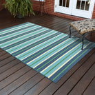 Meridian 9652F, a stunning rug that will transform any indoor or outdoor area with its vibrant colors. The collection showcases tricolor yarn in popular shades like indigo blue, Aruba blue, Kelly green, and tomato red. This unique feature provides added versatility for creating a colorful space that pops.