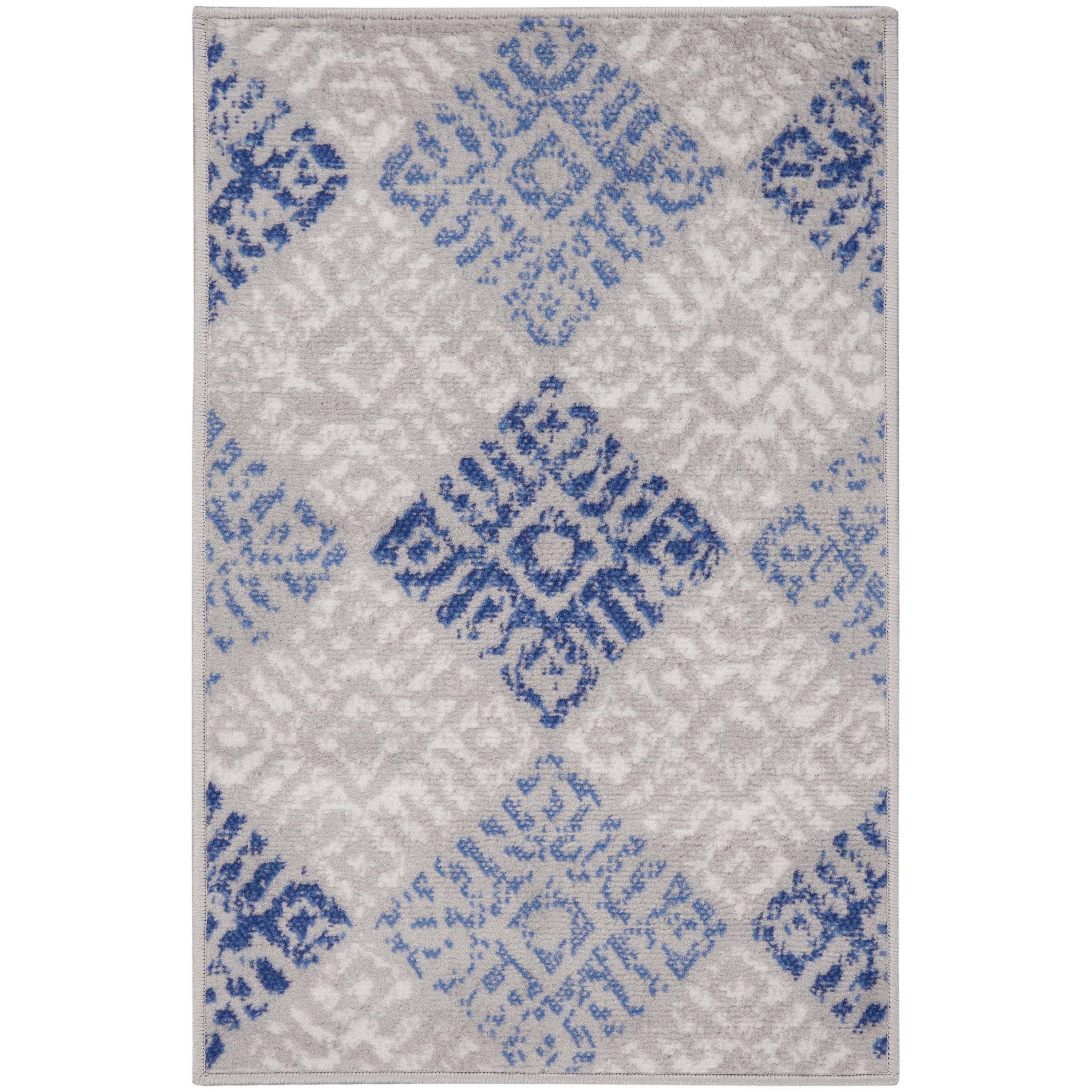Whimsicle WHS18 Grey Blue rug from our eclectic Whimsicle Collection. Embrace true bohemian style with a mix of tribal, geometric, and floral motifs that create a unique look for any room. The vintage patinas and neutral palettes give these rugs a distressed yet timeless appeal, making them a versatile addition to any decor style.