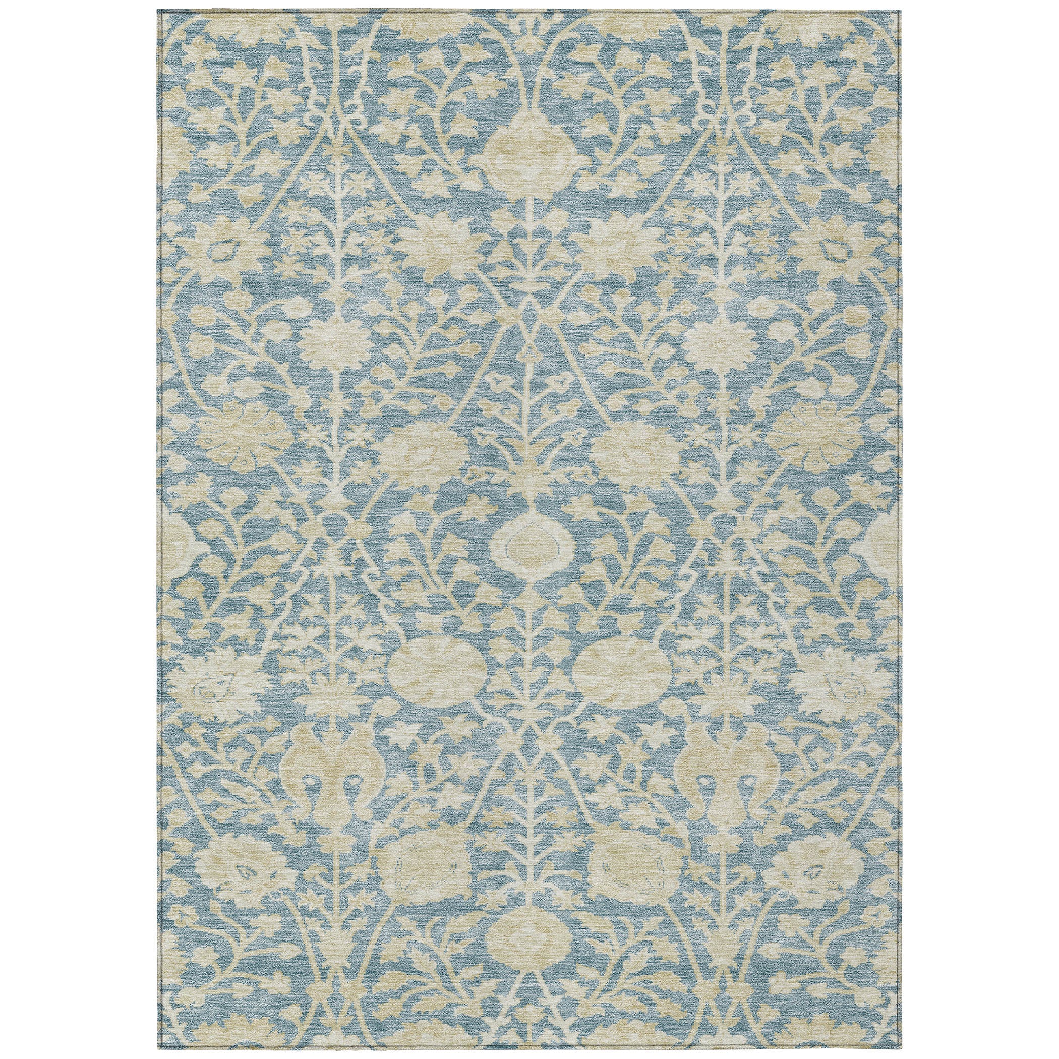 Transform your home with our exquisite area rug, adorned with a vine-like pattern and intricate floral details in soothing hues. The transitional design fits beautifully into both traditional and contemporary settings. UV stabilized to resist fading, this rug is perfect for both indoor and outdoor spaces. Its ultra-thin design allows for easy placement in any room, and the machine-washable fabric ensures effortless maintenance, making it a great choice for busy households with pets and kids.