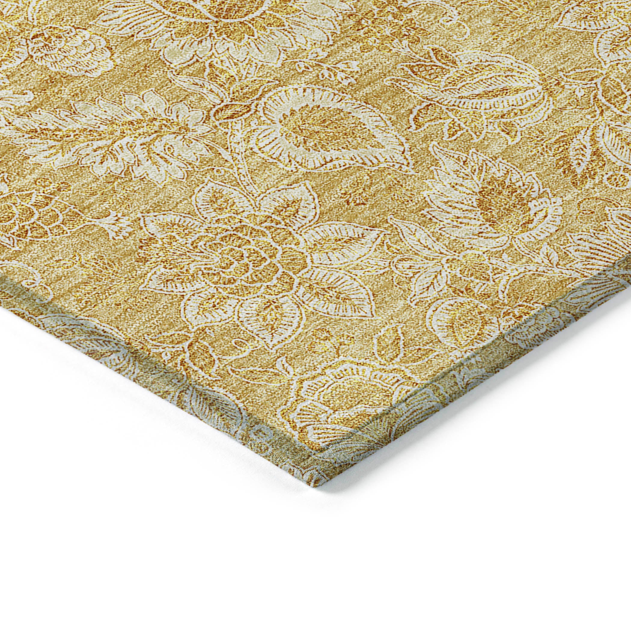 Chantille ACN661 Gold rug that effortlessly blends small bouquets and leaves to infuse your space with organic charm. This versatile floral rug not only enhances your decor but also offers functionality. Designed for both indoor and outdoor settings, it boasts UV stabilization to resist fading over time. The sleek ultra-thin profile is complemented by a non-skid backing, ensuring stability without the requirement of an additional rug pad. Enjoy the convenience of machine-washable care, making it a perfect choice for households with busy families and pets. Elevate your living space with this elegant and practical Chantille ACN661 Gold rug today!