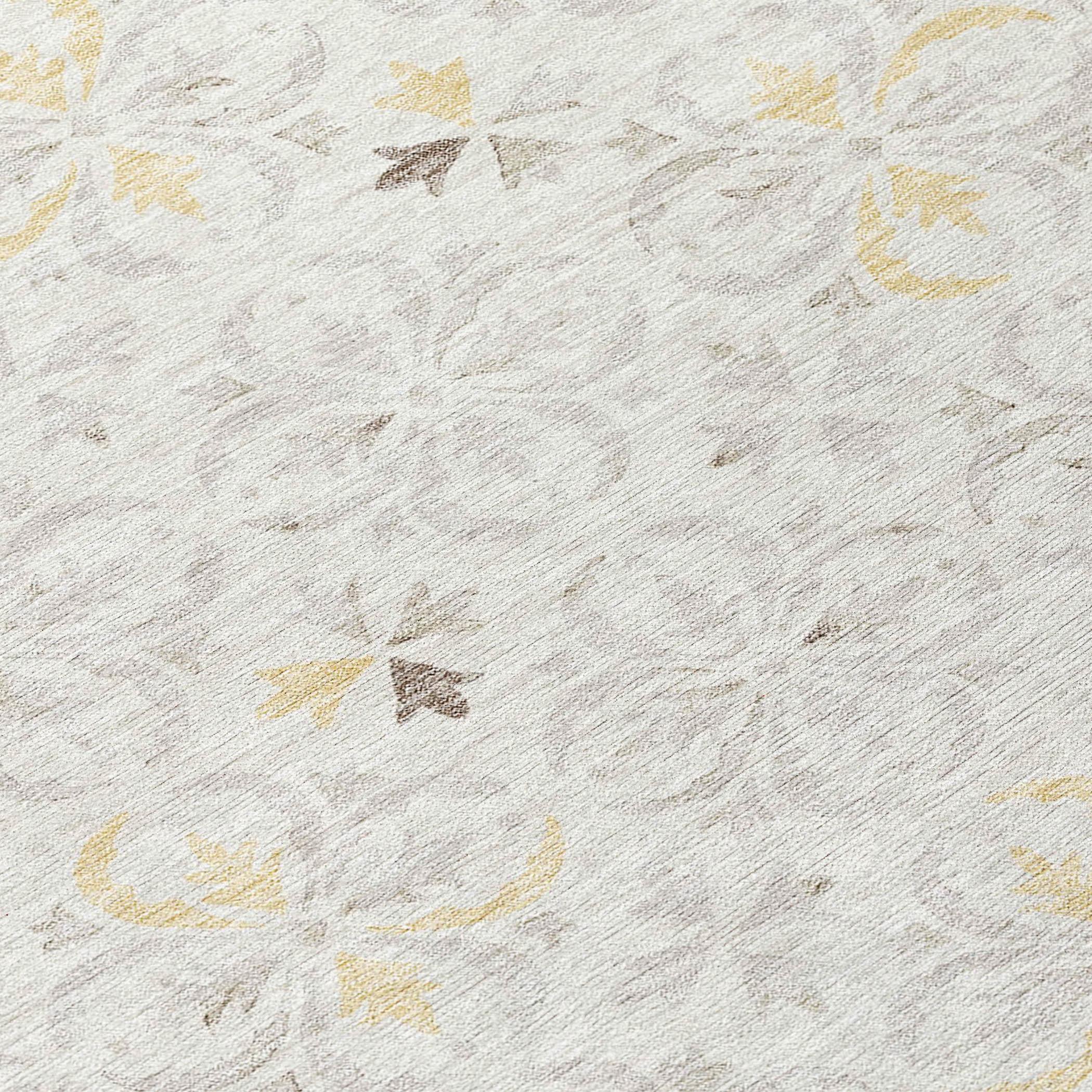 Elevate your home decor with the Chantille ACN930 Ivory area rug. This elegant piece showcases delicate floral petals arranged in a captivating geometric pattern, effortlessly fusing transitional and floral aesthetics. Crafted for lasting quality, this rug is UV stabilized for indoor and outdoor settings, offering versatility and resilience. Its thin profile and machine-washable design cater to busy households with children and pets, providing easy maintenance and peace of mind. Add a touch of charm and practicality to any space with this stylish and functional rug.