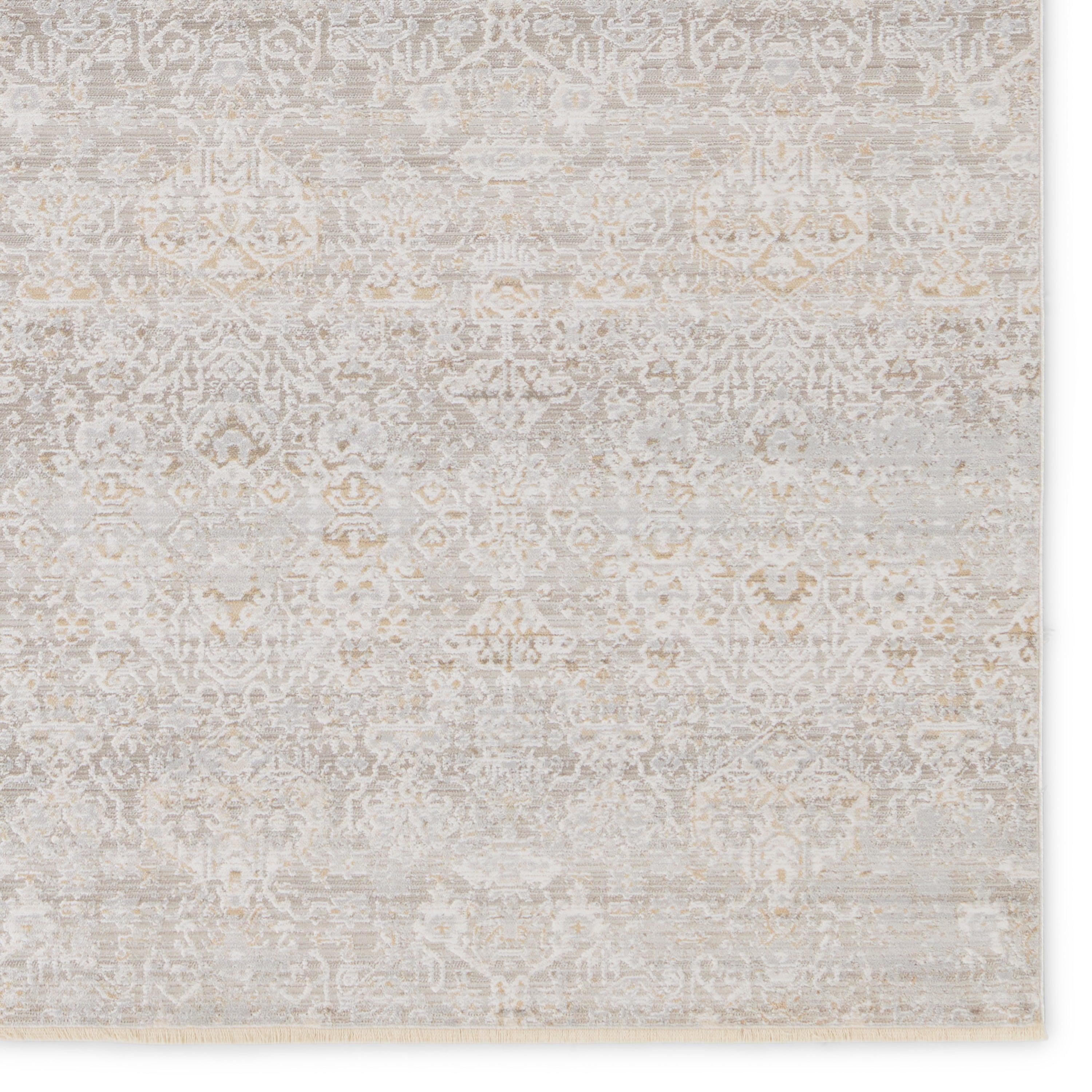 The stunning En Blanc collection captures the elegance of neutral, vintage-inspired patterns and melds Old World aesthetics with an updated and luxurious vibe. The Wayreth rug boasts a repeating, floral trellis design in tonal hues of taupe, silver, cream, and hints of gold. Soft and lustrous, this chameleon-like design emulates the timeless style of a Turkish hand-knotted rug, but in an accessible polyester and viscose power-loomed quality. This traditional accent piece thrives in low traffic areas of the home like bedrooms, formal dining areas, formal living spaces, and sitting rooms.