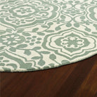 Tara Rounds EVL04 88 Mint rug from the exquisite Tara Rounds Collection. Embodying elegant design in a circular shape, these rugs bring a timeless and versatile appeal to any space. Hand-tufted by skilled artisans in India, each rug is crafted using premium 100% imported wool for luxurious softness and durability.