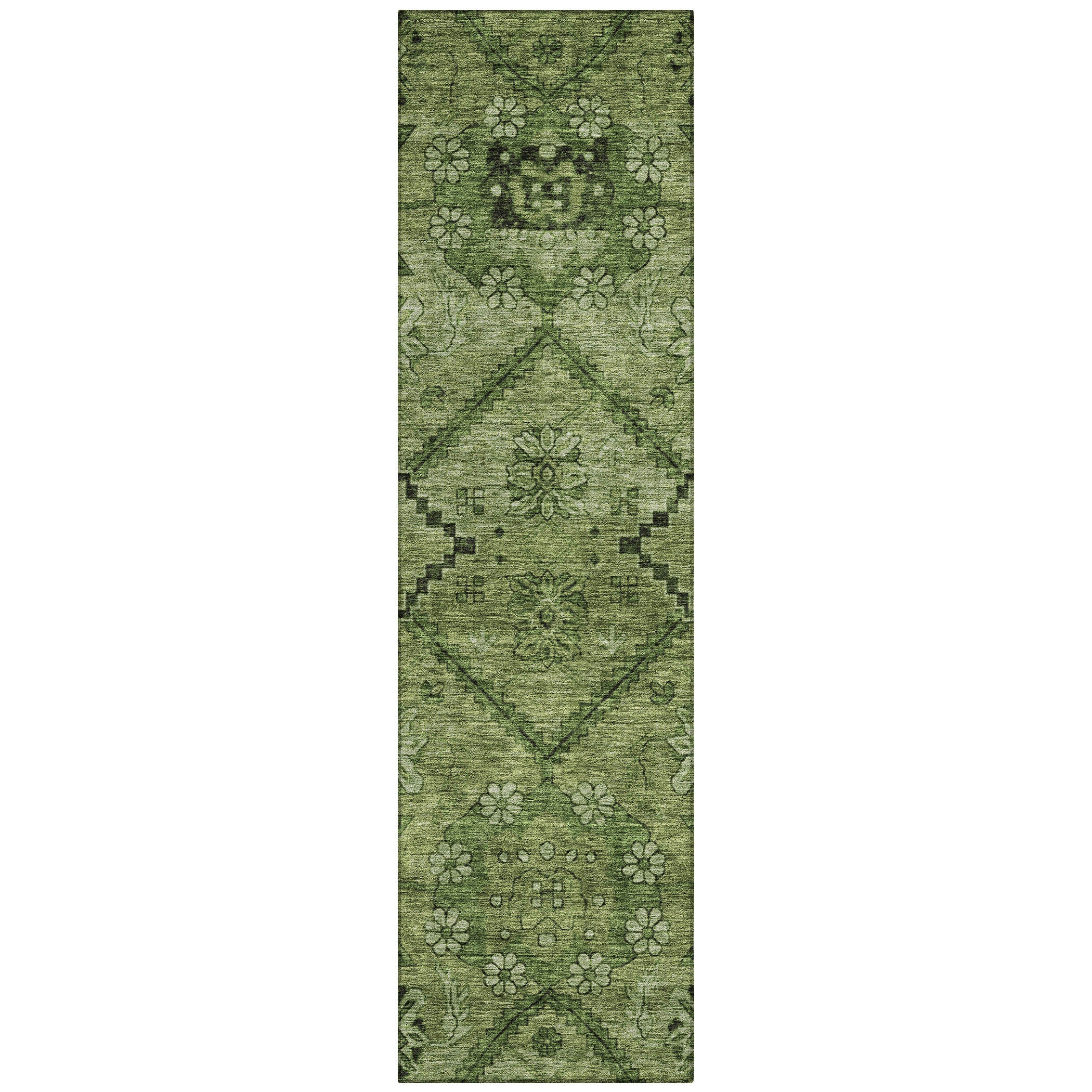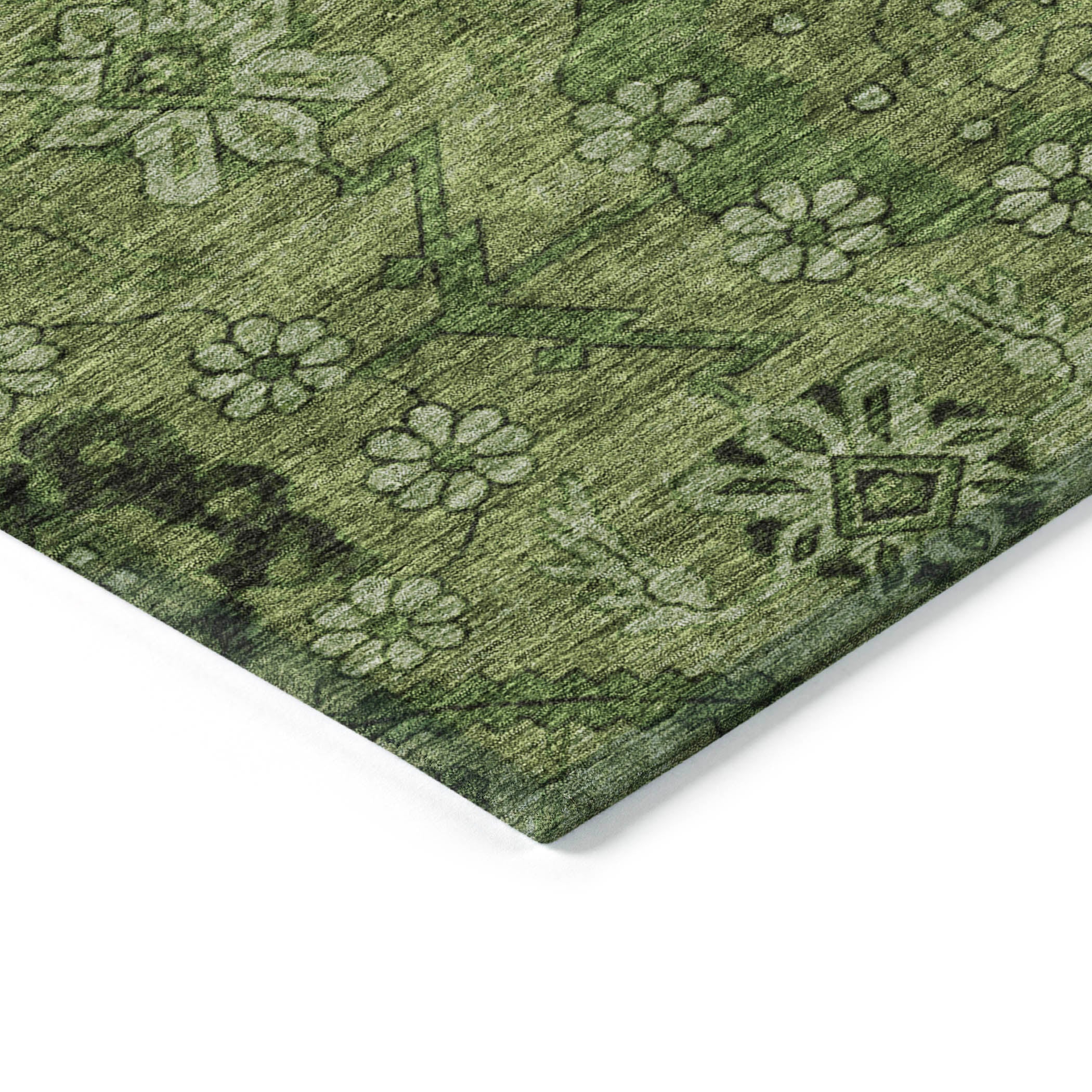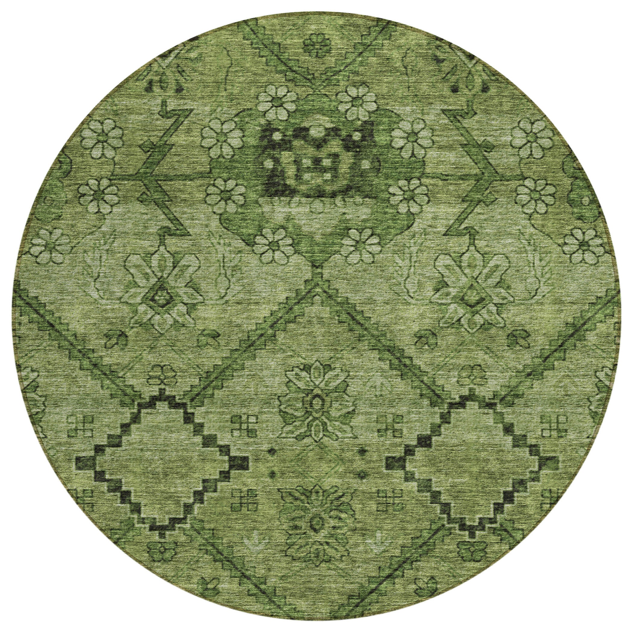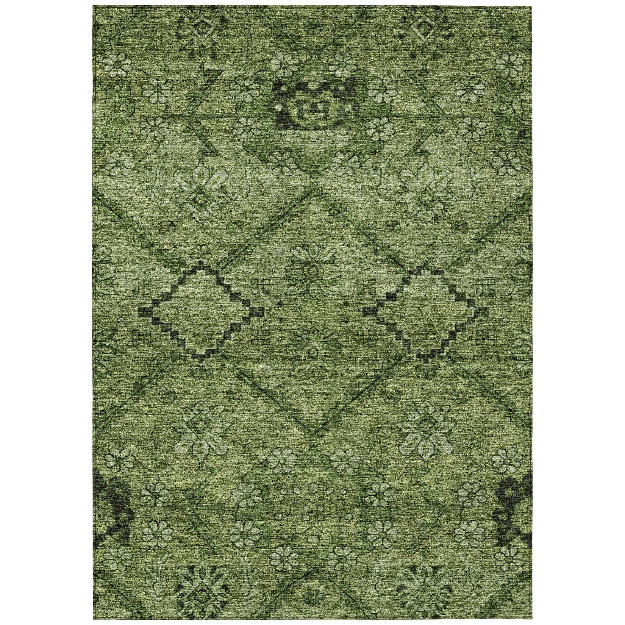 Introduce a touch of elegance to your living space with the Chantille ACN842 Olive area rug. Featuring a charming floral pattern intertwined with bold zig-zag diamonds, this rug effortlessly combines traditional and contemporary design elements. Crafted for durability, it is UV stabilized for use indoors or outdoors, while its ultra-thin construction allows for easy placement in any room. Plus, the rug is machine-washable, perfect for homes with pets that also value style.