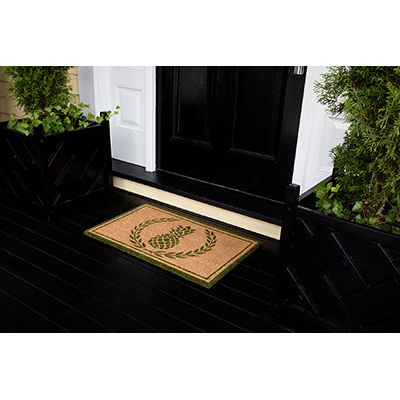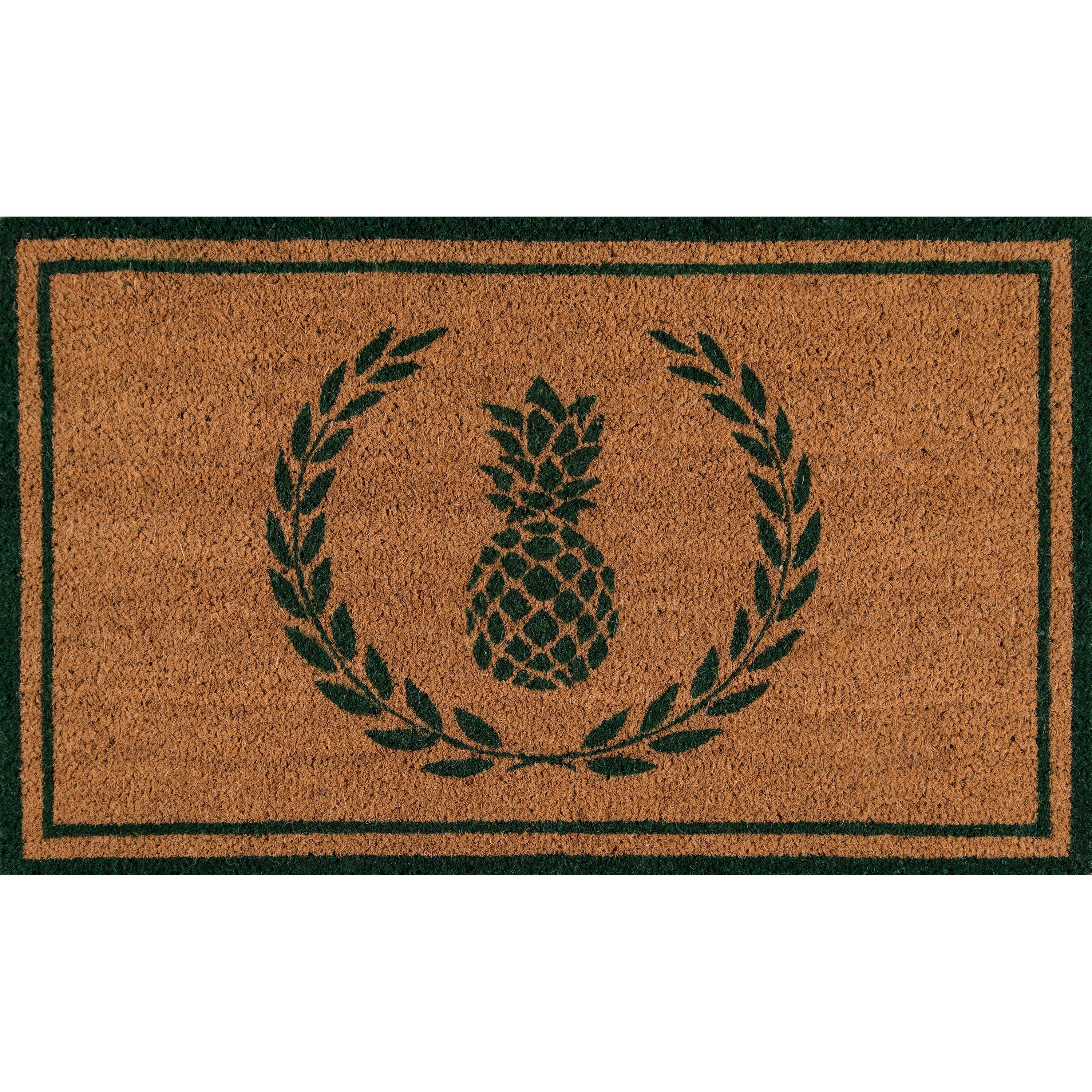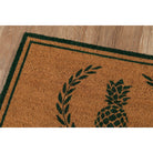 Park Par 1 Green, a charming collection of indoor and outdoor area rugs that will instantly elevate your space. With a variety of designs including traditional laurel leaf, pineapple motifs, Greek Key borders, diamonds, and decorative stripes, each rug features a visually appealing graphic pattern sure to catch the eye of your guests. Constructed with durable coir material, these rugs effectively clean dirt from shoes and dry quickly, making them ideal for any weather condition.