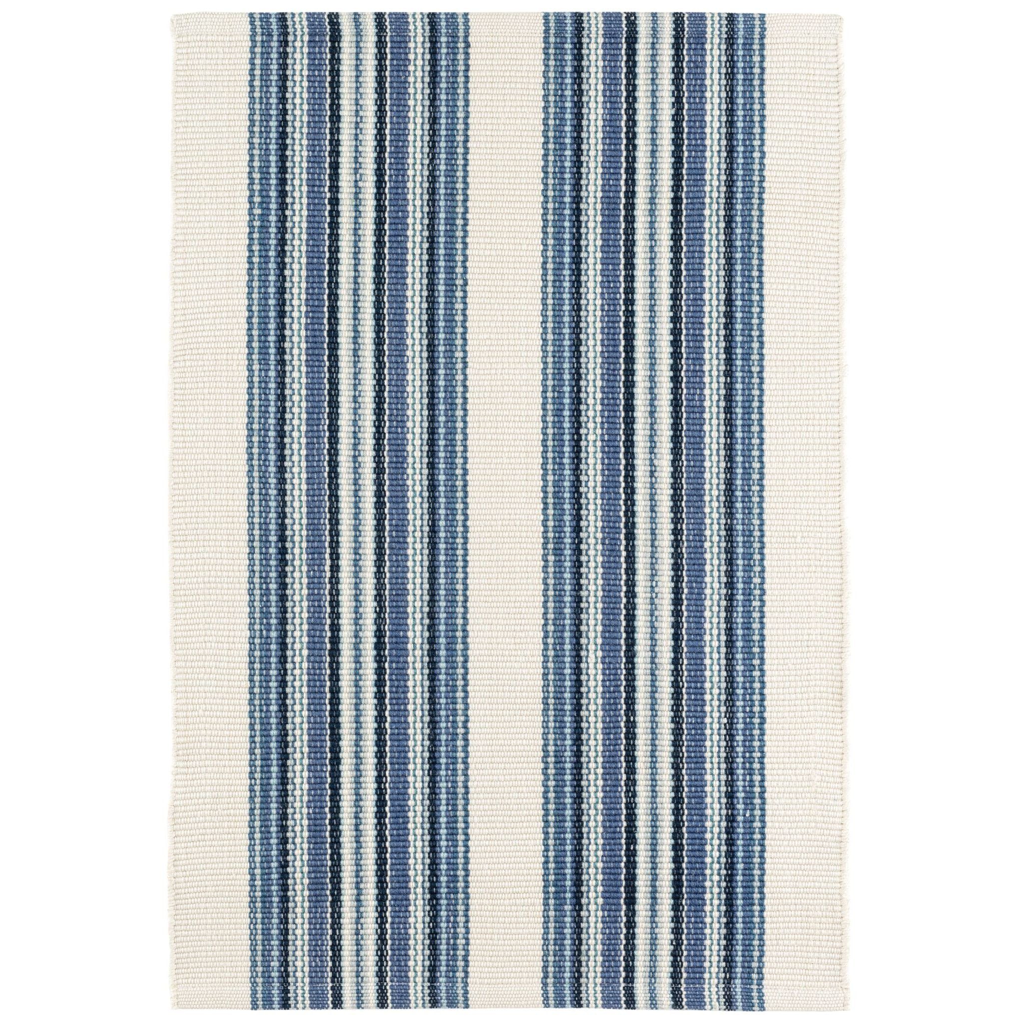 Born to run, these energetic rugs will outpace any other stripe on your floors or stairs. Woven in resilient and washable recycled P.E.T. performance threads and featuring a multitude of tonal colors crammed into exuberant mini striped vertical blocks, this durable and fade-resistant rug feels as soft as cotton but will stand up to whatever everyday life brings its way.