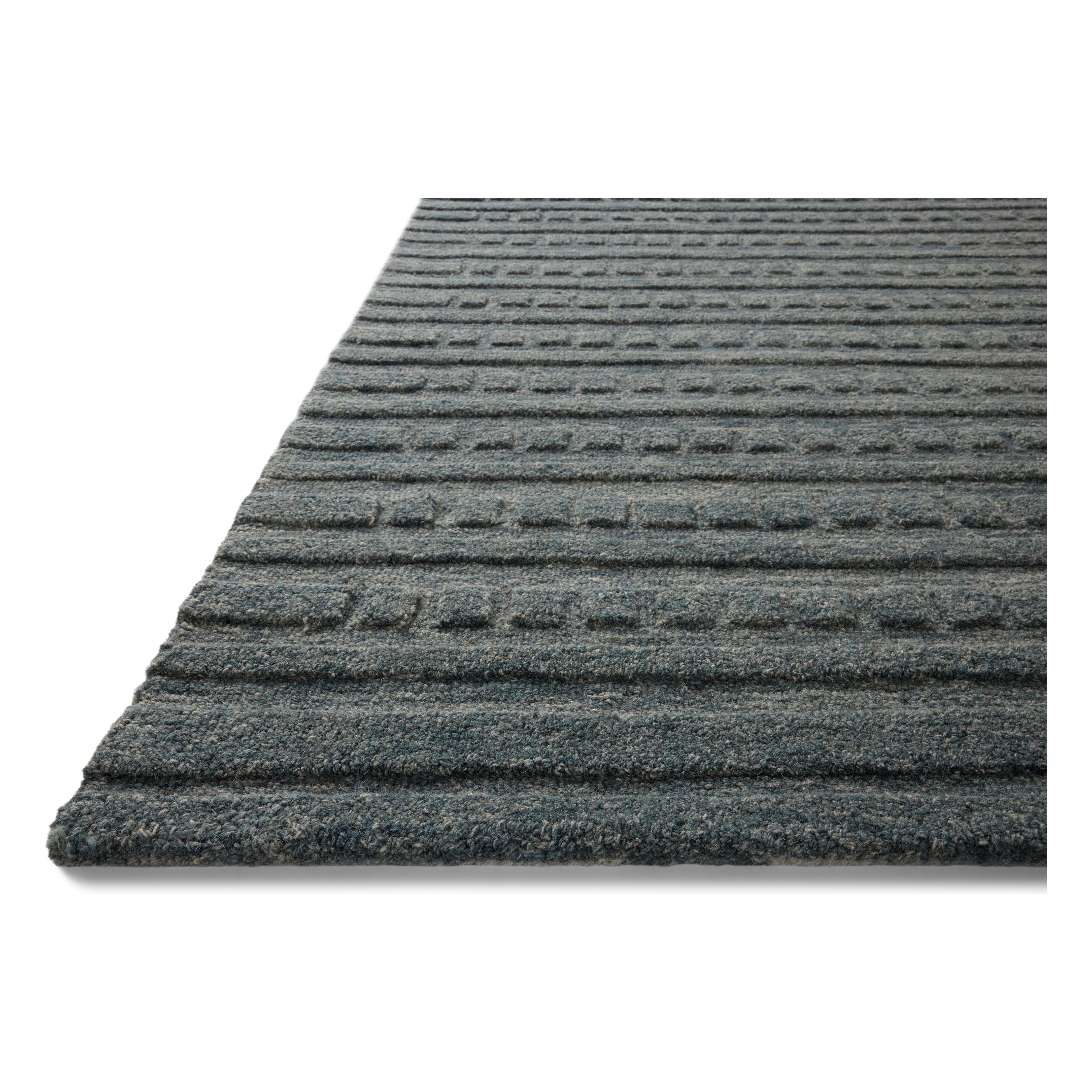 Bradley Brl 05 Teal Teal rug from the exclusive Bradley Collection by Chris Loves Julia x Loloi. Elevating the classic striped rug to a new level, this hand-tufted masterpiece is crafted from 100% wool. The unique design showcases two-toned linear patterns with alternating high-low pile, adding depth and texture to any space.