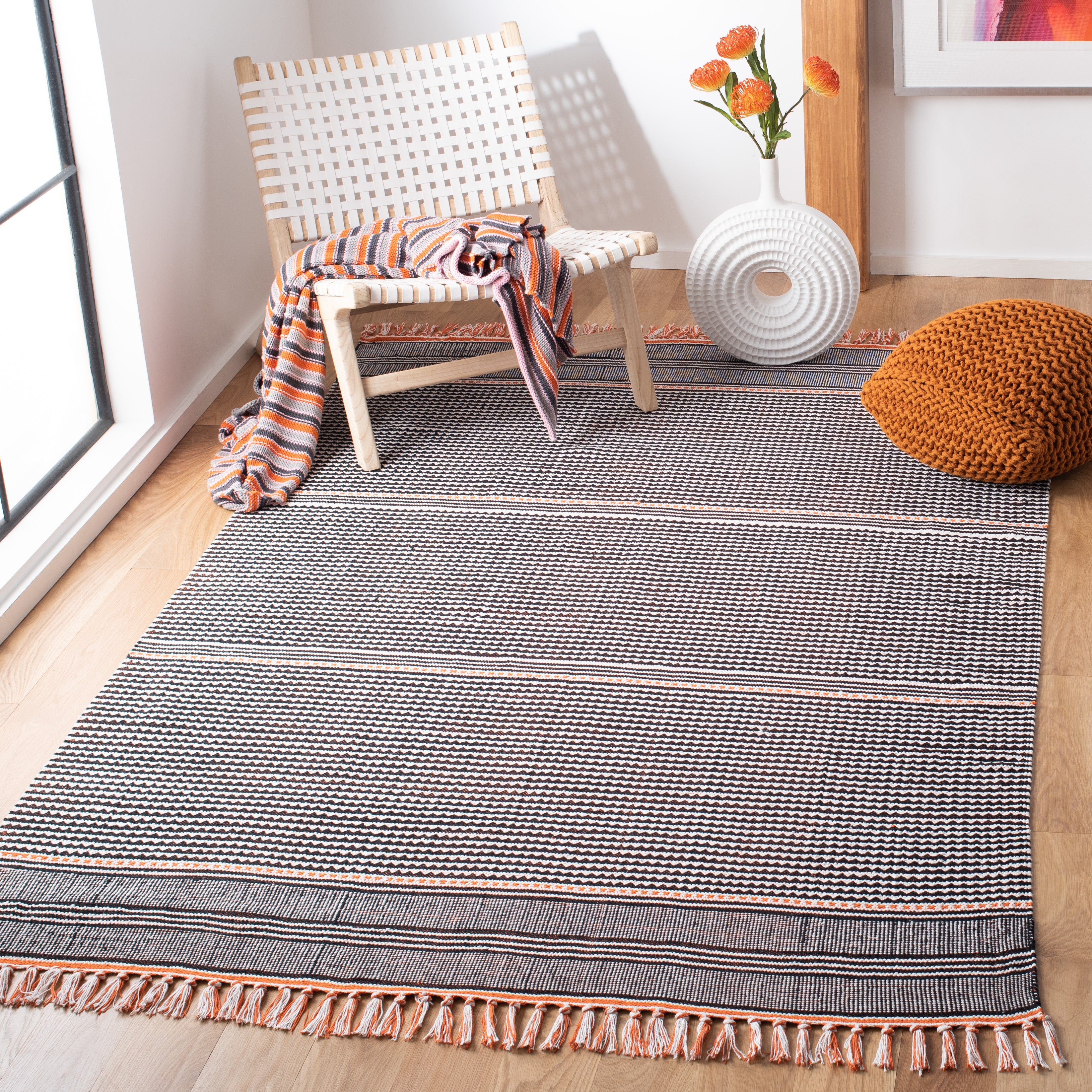 Montauk MTK607D Orange Multi rug, a versatile addition to any home decor. This collection perfectly blends casual designer styling with flat weave craftsmanship, making it ideal for coastal and contemporary interiors. Crafted by hand in India using high-quality cotton, these rugs boast vibrant colors and classic Ikat tie-dye patterns that add a touch of sophistication to your space.