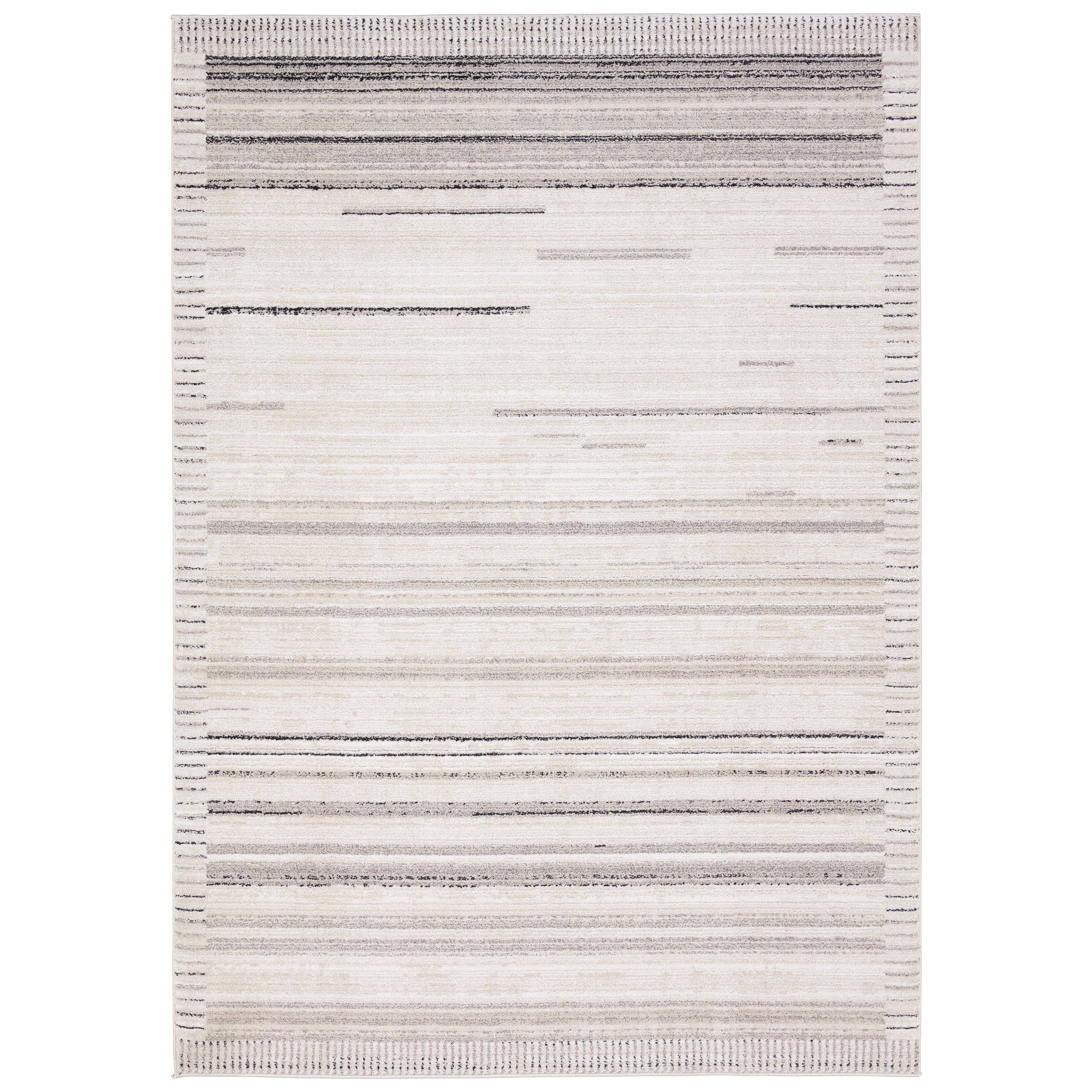 Yielding the look of wool at the price point of machine-made, the Eva rug honors abstract artists with its modern appeal and striped tan and taupe Travian design. This durable and contemporary piece is perfect for high-traffic homes and brings a new meaning to work of art.