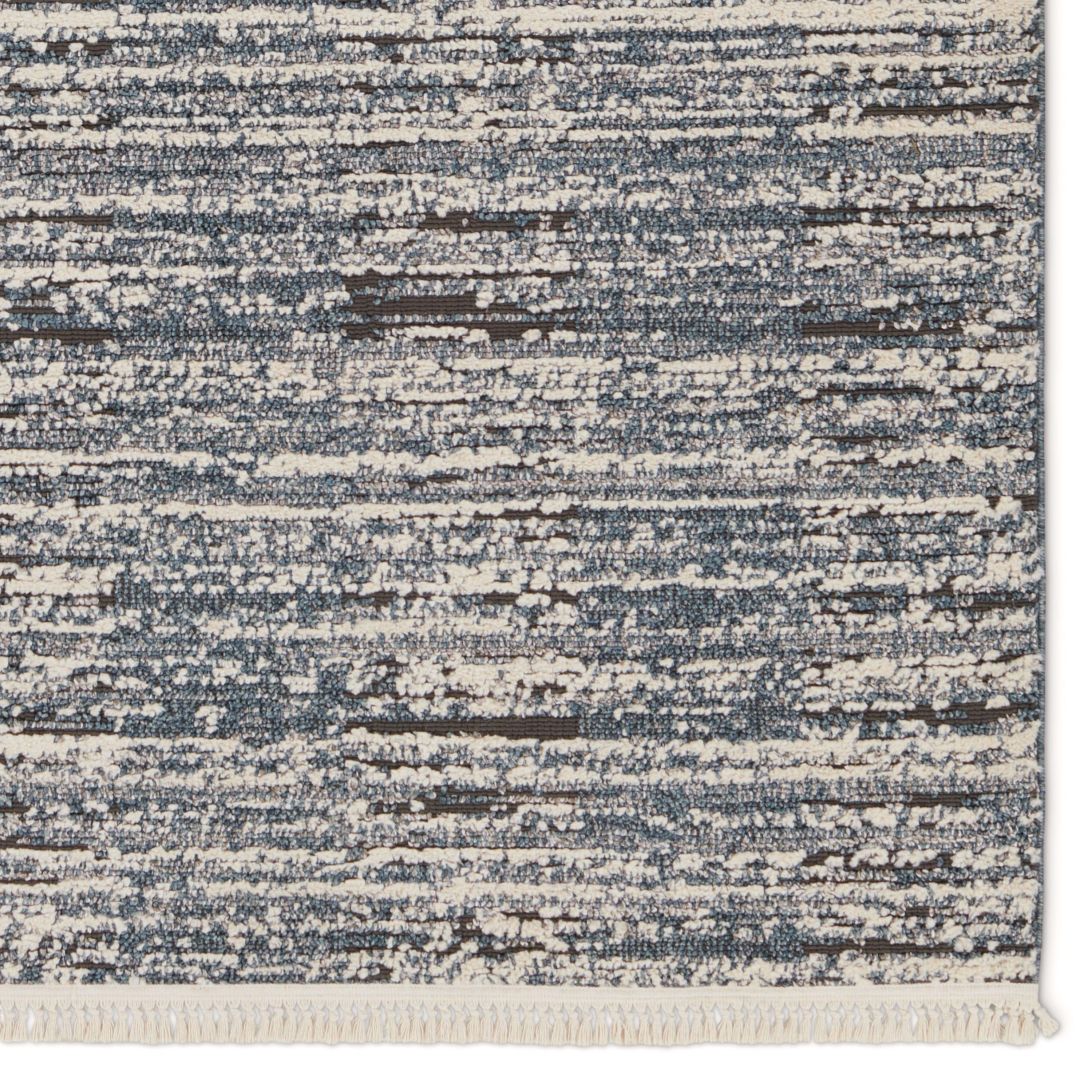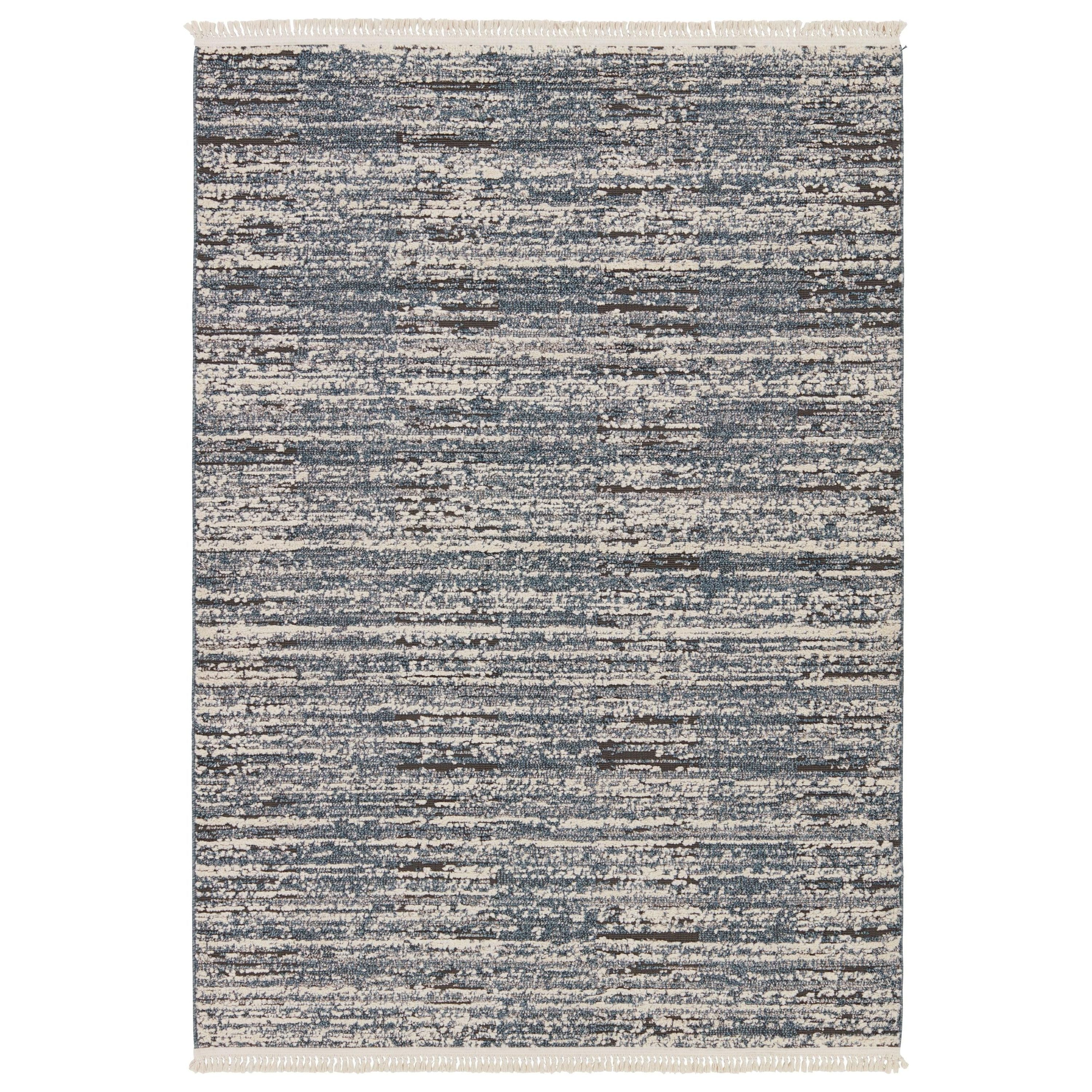 The Lore collection introduces an assortment of modern Moroccan motifs and unique texture that grounds spaces with statement-making style. The Duna area rug features a distressed striped design, cut and looped pile, and cream, fringe. The contrasting neutral tones of blue, gray, and cream offer the perfect anchor to contemporary design. This indoor rug thrives in medium and low traffic spaces of the home such as bedrooms, dining areas, formal living rooms, and guest areas.