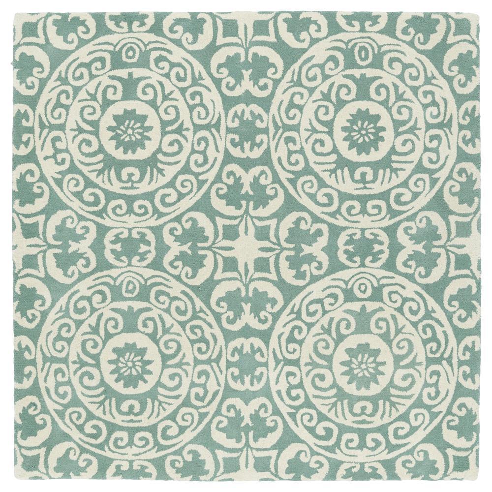 Tara Square EVL03 88 Mint, a stylish addition to any home or office with its perfect square shape. The rugs in the Tara Squares collection boast a blend of warm hues and vibrant colors, showcasing symmetry and classic patterns that seamlessly combine antiquity with modern design. Hand-tufted in India from 100% imported wool, these rugs offer a wide range of sizes to suit your space perfectly.