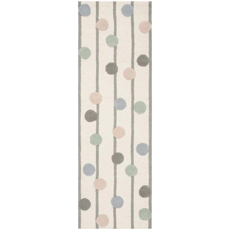 Safavieh Kids SFK909A Ivory Multi rug from the Kids Collection. Our rugs feature playful patterns with a touch of sophistication, designed to appeal to a wide range of ages. This versatility ensures that these rugs can adapt as your child grows, making them perfect for both preschoolers and pre-teens alike. Not limited to just kids' rooms, these rugs also make charming additions to beach cottages or guest rooms, adding a fun accent to any space. Bring style and durability into your child's room with the Safavieh Kids SFK909A Ivory Multi rug today!