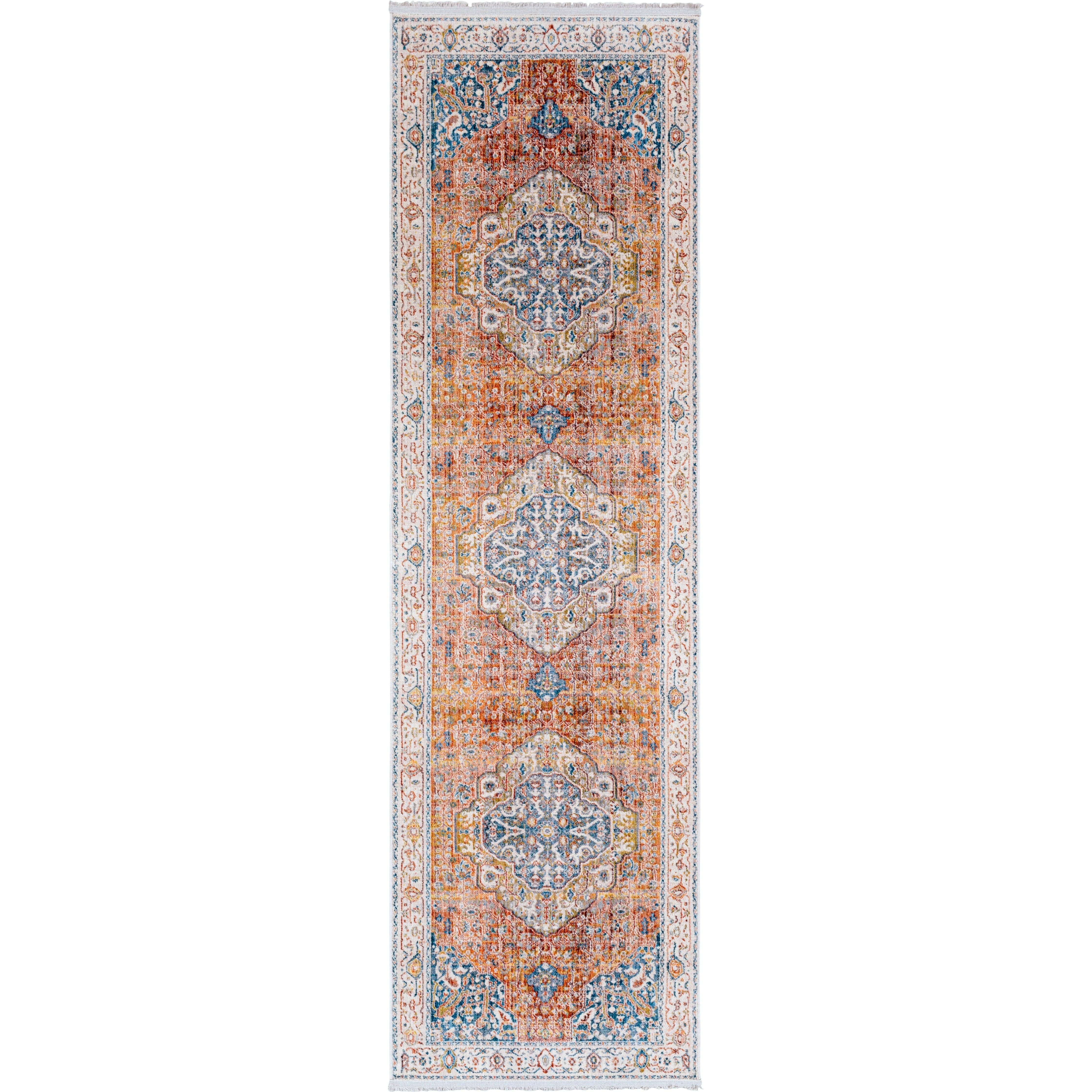 Detailed Colors: Dark Blue, Burnt Orange, Saffron, Olive, Medium Gray, Beige, Cream