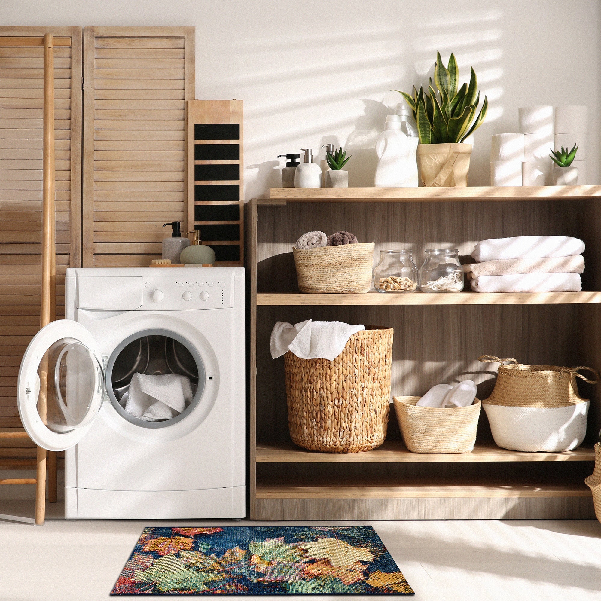 Esencia Fall In Love Multi garden mat that brings a touch of romance and nostalgia to any space. This decorative mat boasts vibrant colors that capture the essence of the Fall season, making it a perfect addition to both indoor and outdoor areas. Imagine a botanical scene of freshly fallen leaves in shades of orange, red, yellow, and green against a backdrop of deep teal.
