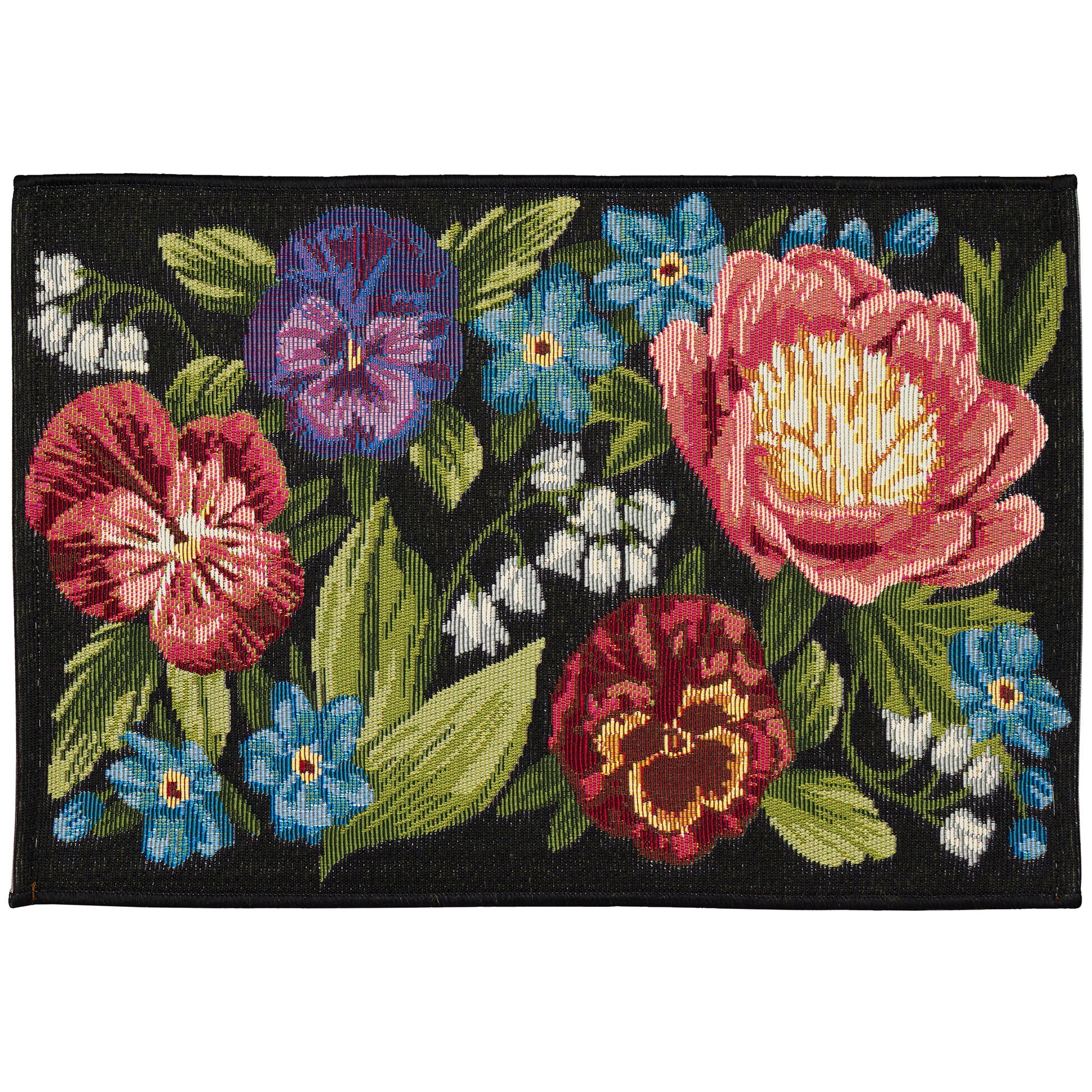 Esencia Secret Garden Black, a stunning decorative botanical garden mat that will bring a touch of nature into your home. This mat showcases a vibrant display of fully blooming flowers in various colors against a sophisticated black background. The Secret Garden design seamlessly transitions between seasons, making it a versatile and timeless addition to any space.