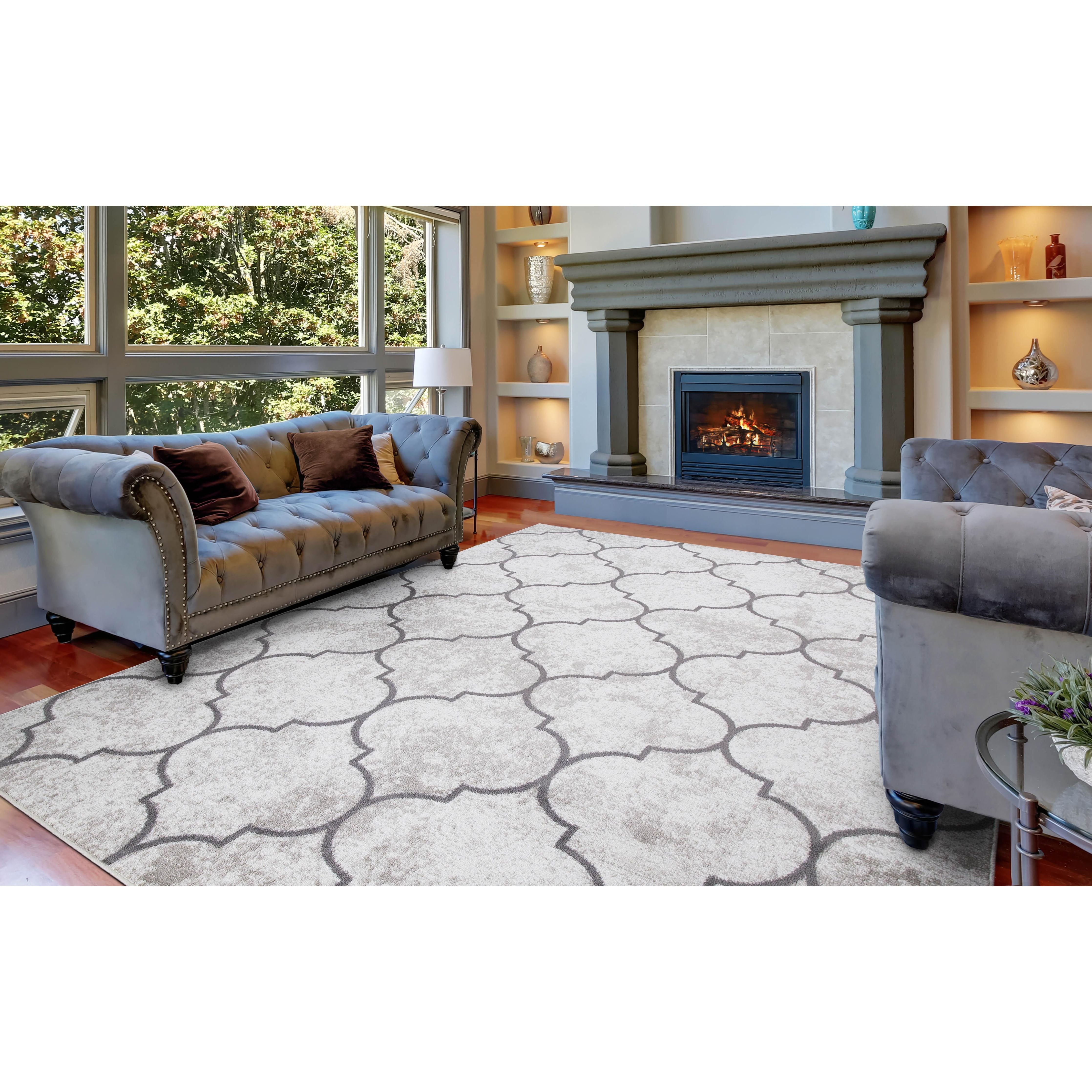 Introduce a touch of style to your living space with the Jefferson Morocco Trellis Ivory area rug. Crafted with stain-resistant materials, this rug is perfect for indoor use and will seamlessly blend in with your home decor. The minimalist design exudes elegance and keeps up with modern fashion trends. Its lightweight construction ensures easy placement and upkeep, making it a versatile choice for any room. Constructed from durable olefin yarn, this budget-friendly rug guarantees long-lasting quality, providing both style and practicality to your home.