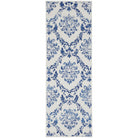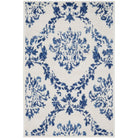 Whimsicle WHS01 Ivory Navy rug from our eclectic collection. Embrace bohemian flair with a blend of tribal, geometric, and floral designs. The vintage-inspired distressed finish in neutral shades complements any decor style effortlessly. Crafted with care, these low-profile area rugs are made of soft polyester for a cozy addition to your living space, bedroom, dining area, or home office.