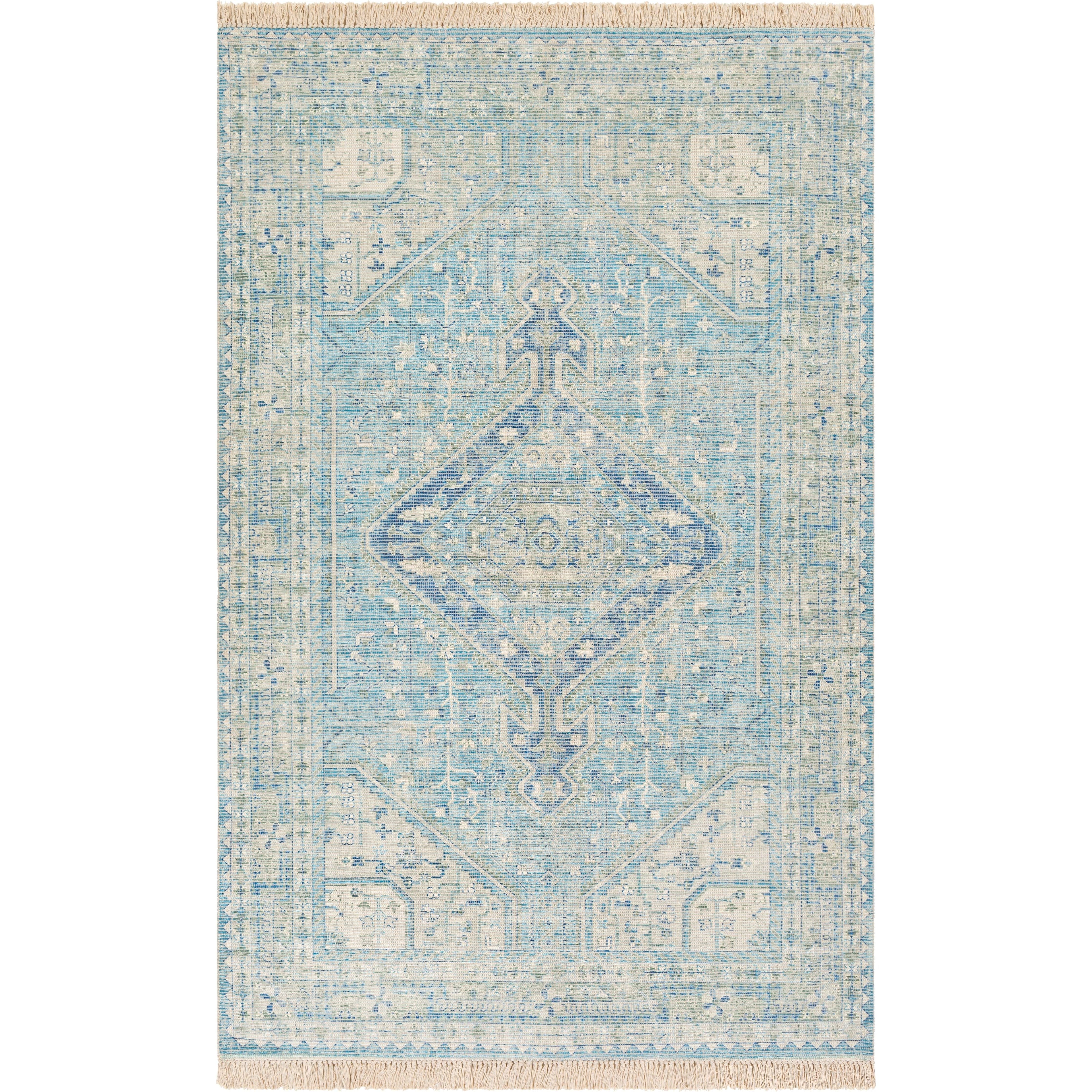 Zainab Zai 2304 from the exquisite Zainab Collection. This collection is a celebration of traditional-inspired designs that embody elegance, comfort, and sophistication. Each piece is meticulously woven in India, combining Cotton and Polyester to create durable rugs that effortlessly enhance any decor space.