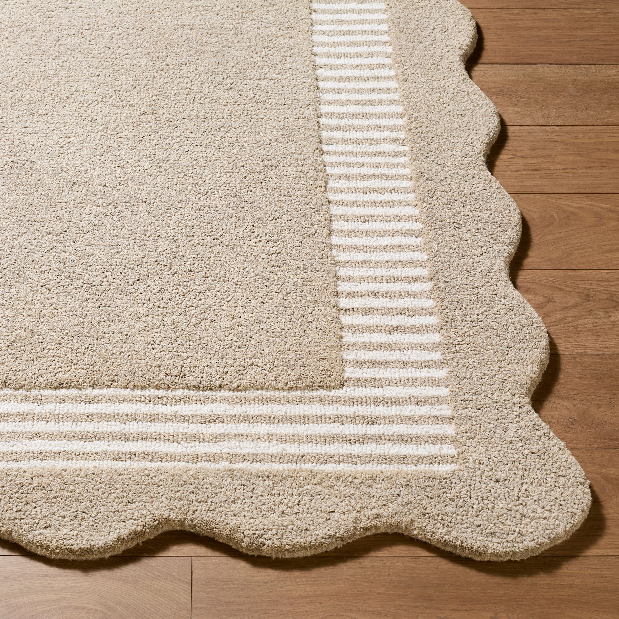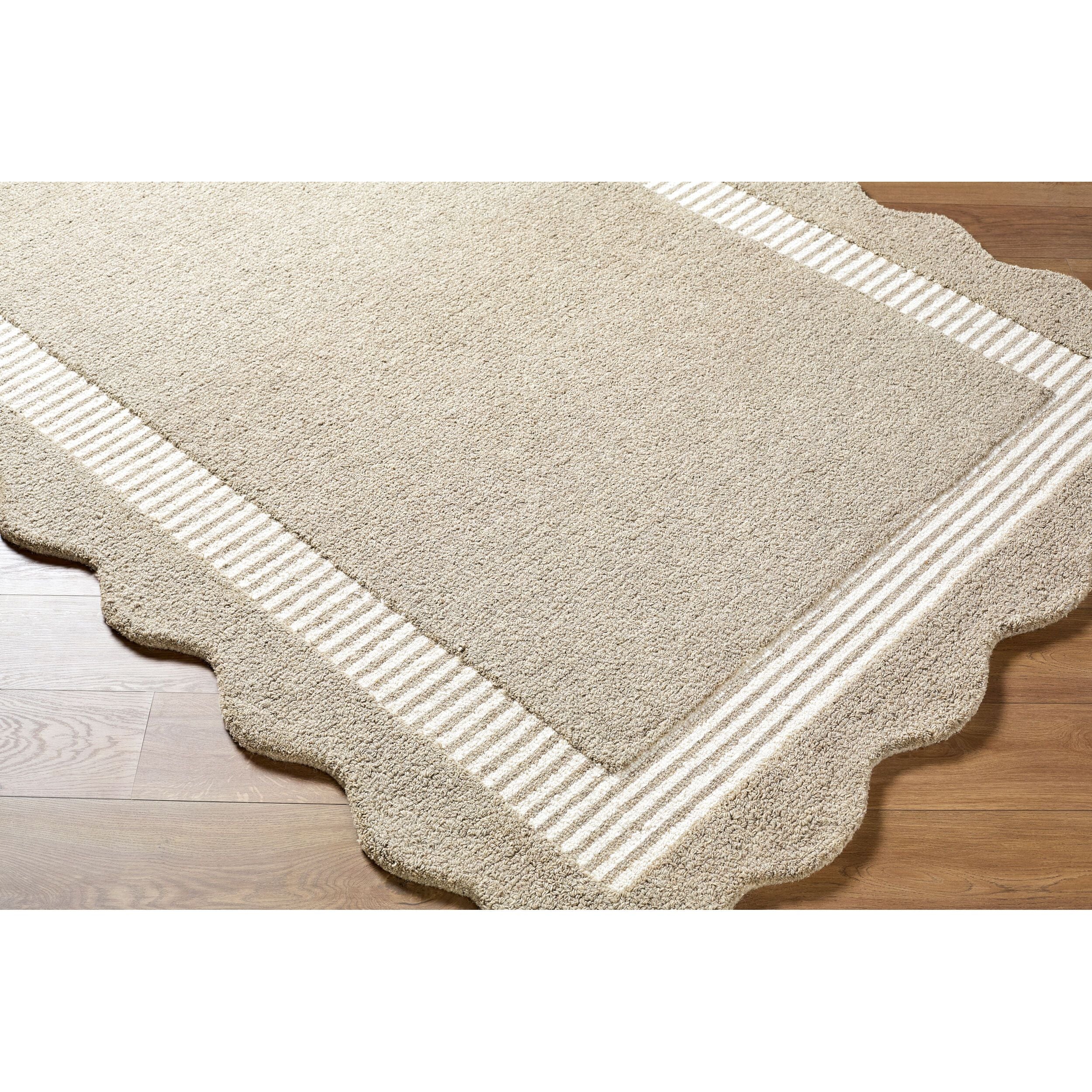 Introducing the Scalloped Collection handmade rug, where minimalist modern design meets exquisite craftsmanship. Meticulously hand tufted in India from luxurious wool, this rug promises to elevate your living space with its sophisticated allure. Its medium pile provides just the right amount of plush comfort underfoot, creating a cozy yet stylish atmosphere in any room. To ensure maximum comfort and durability, we recommend pairing it with a rug pad. Easy to maintain with simple spot cleaning using a dry cloth, this rug is both practical and beautiful?making it the perfect addition to your home decor lineup. Transform your floors into a canvas of contemporary elegance with the Scalloped Collection rug today!