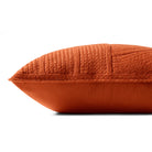 This textured solid orange throw pillow features a woven geometric pattern with raised lines for modern, boho, or midcentury home decor, among other styles. The 20” x 20” square throw pillow can be an elegant accent on a bed, couch, or chair, for indoor or outdoor use. The pillow cover is made of polyester in India.