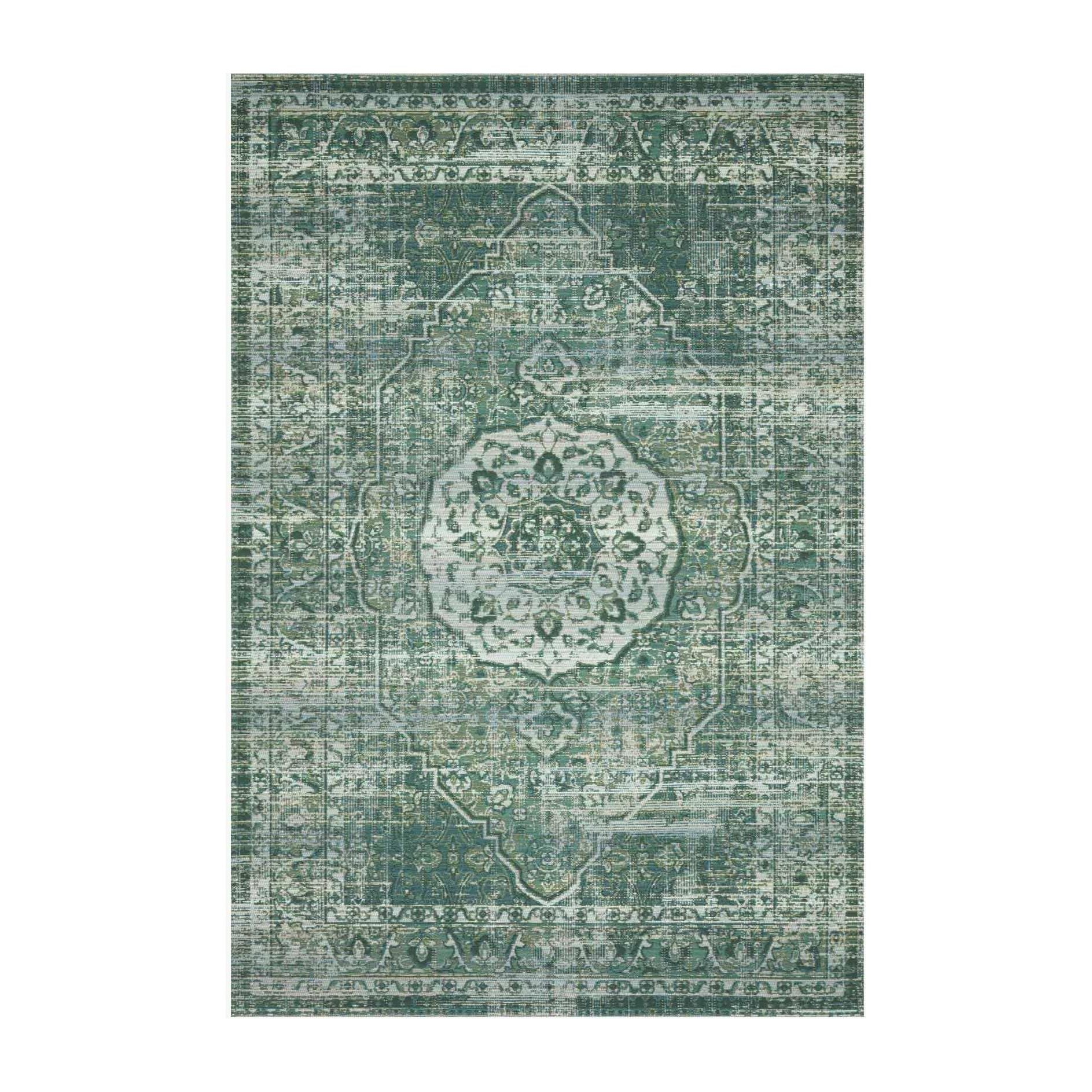 Mika Mik 06 Green Mist rug, a stunning addition to any space. Crafted in Egypt using a blend of polyester and polypropylene, this collection features abstract and tribal-inspired designs that are sure to impress. The textured yarn not only adds depth but also ensures a lasting and sturdy construction. Each rug is meticulously finished with a blanket stitch for a touch of elegance.