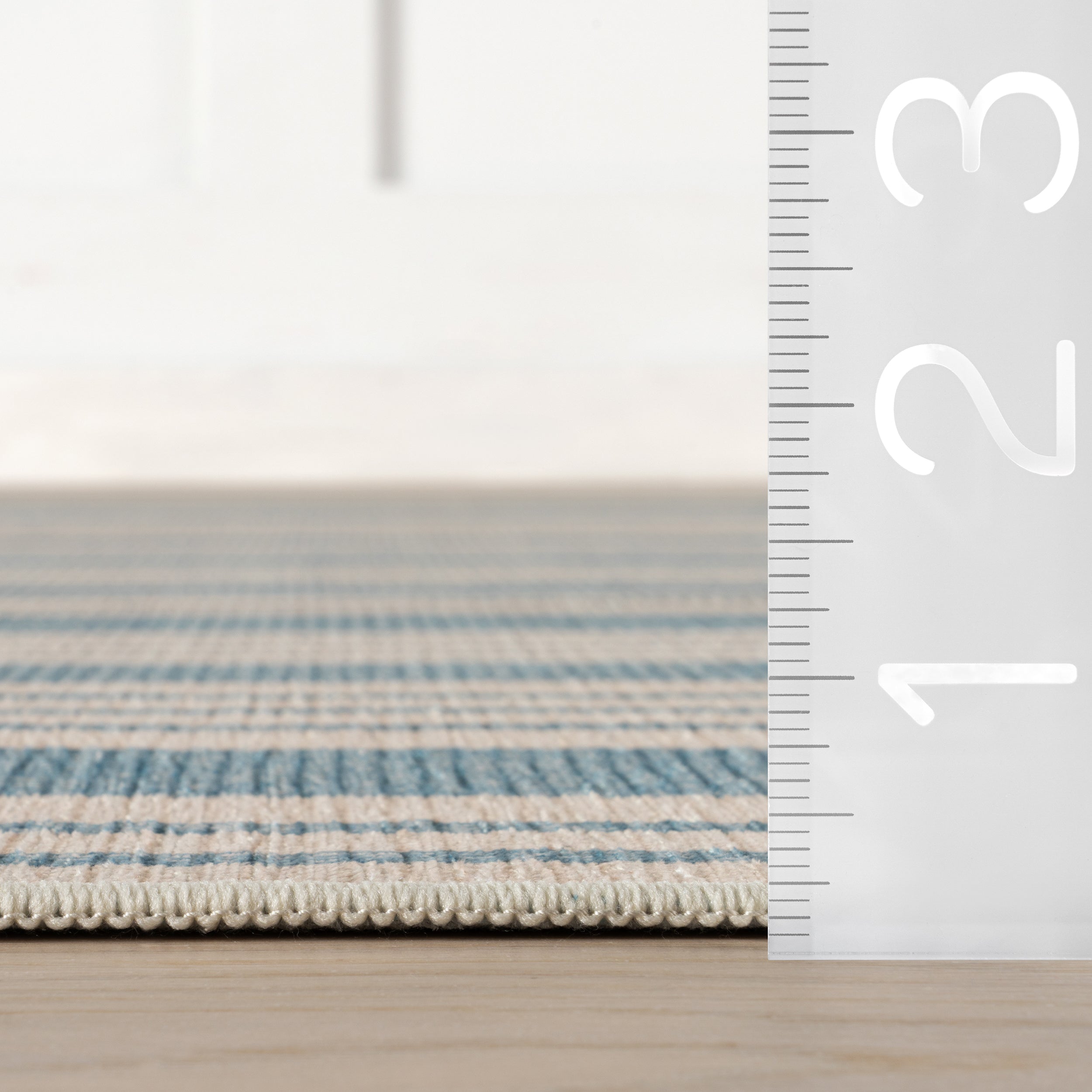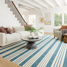 This striped synthetic rug brings a touch of coastal style to your home. Its versatile design and washable, easy-to-clean construction make it a practical and stylish choice for any room, while the coastal aesthetic adds a fresh, breezy feel.
